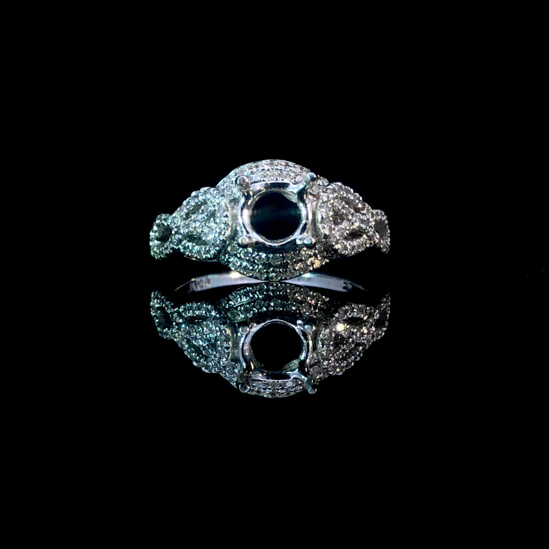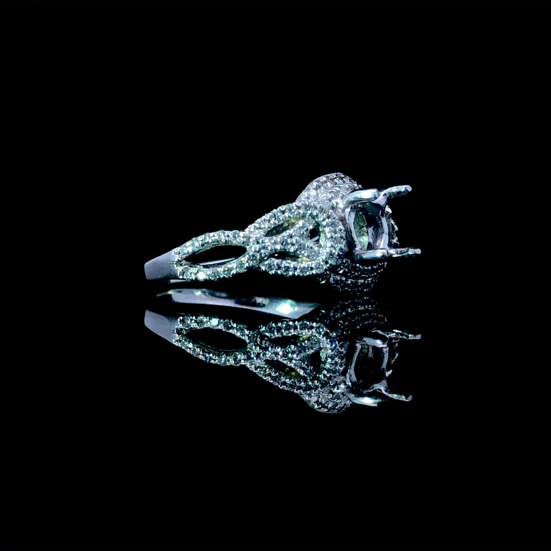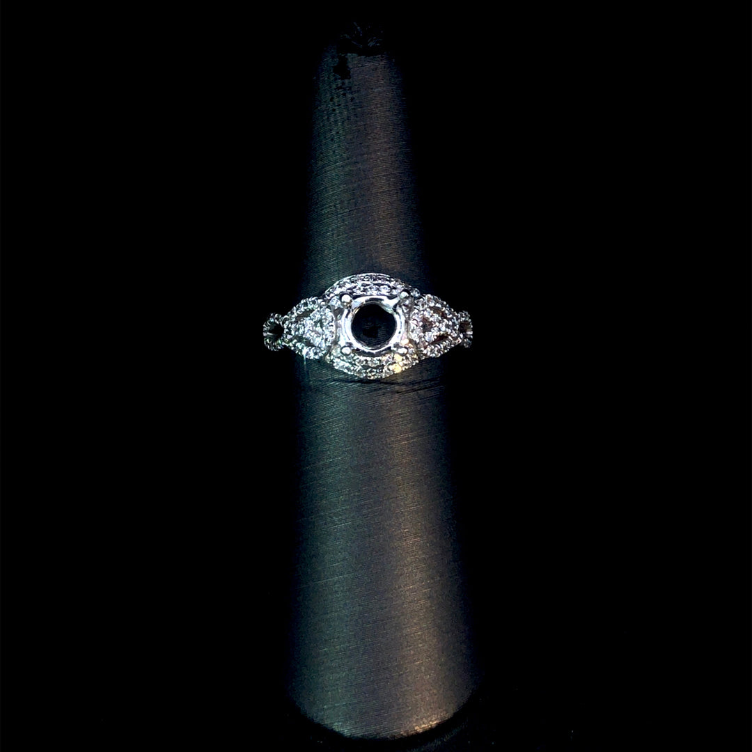 This gorgeous diamond semi mount showcases a beautiful design with .38 carats total weight of round diamonds set in radiant 14kt white gold. Personalize this exceptional piece by selecting your own center stone from our unmatched collection of loose diamonds. Price is for the semi mount only. Center stone will be added at an additional cost. This ring is a size 6. If that size is not a perfect fit, first time sizing is free at the time of purchase. Additional sizing fees may apply.