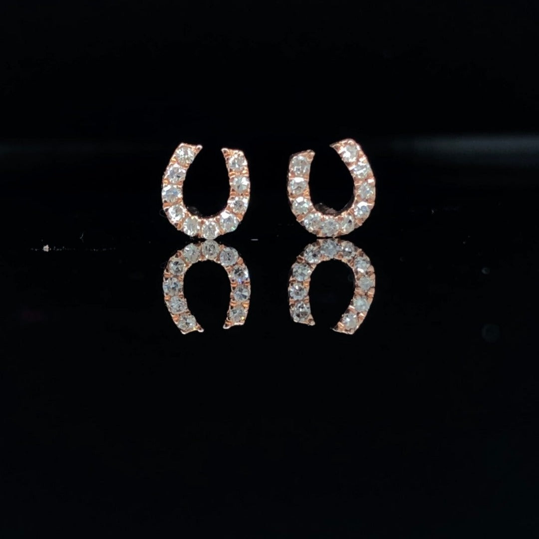 These elegant .10ctw horseshoe earrings are crafted in sophisticated rose gold for a timeless and classic look. The perfect accessory for any occasion, each earring is encrusted with shimmering diamonds for a subtle, yet eye-catching sparkle.