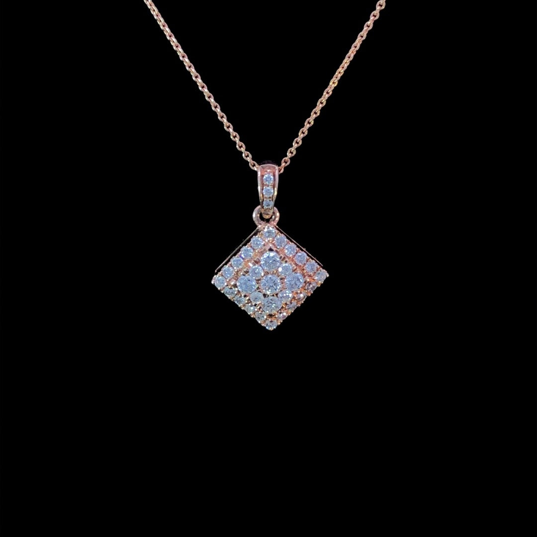 This beautiful pendant features eye-catching .32ctw of diamonds in a square shaped cluster, all nestled in luxurious 10kt rose gold. Enjoy the look of sophisticated elegance in any occasion. Chain is not included.