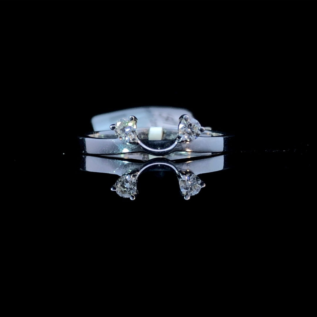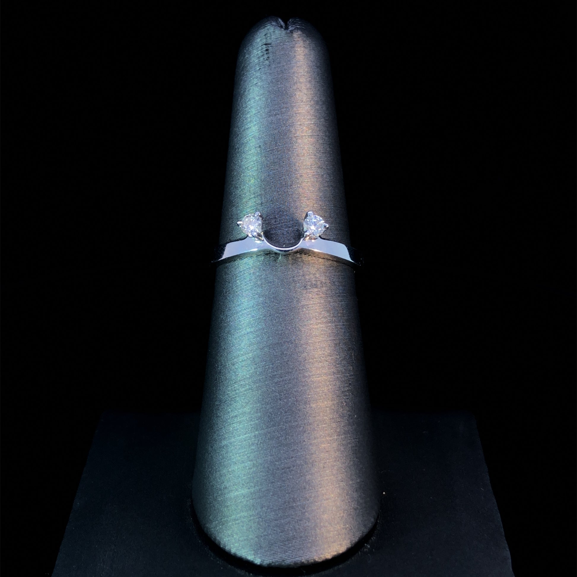 This 14kt white gold ring guard features two brilliant round diamonds totaling .15ctw of dazzling sparkle. Slip it on to enhance your existing ring and complete your look with grace and shine. Love the luxury and make it yours! This ring is a size 6.75. If that size is not a perfect fit, first time sizing is free at the time of purchase. Additional sizing fees may apply.