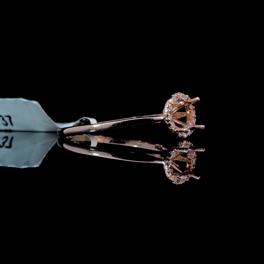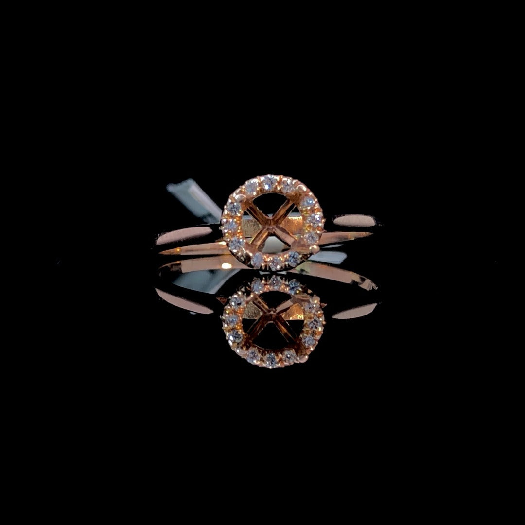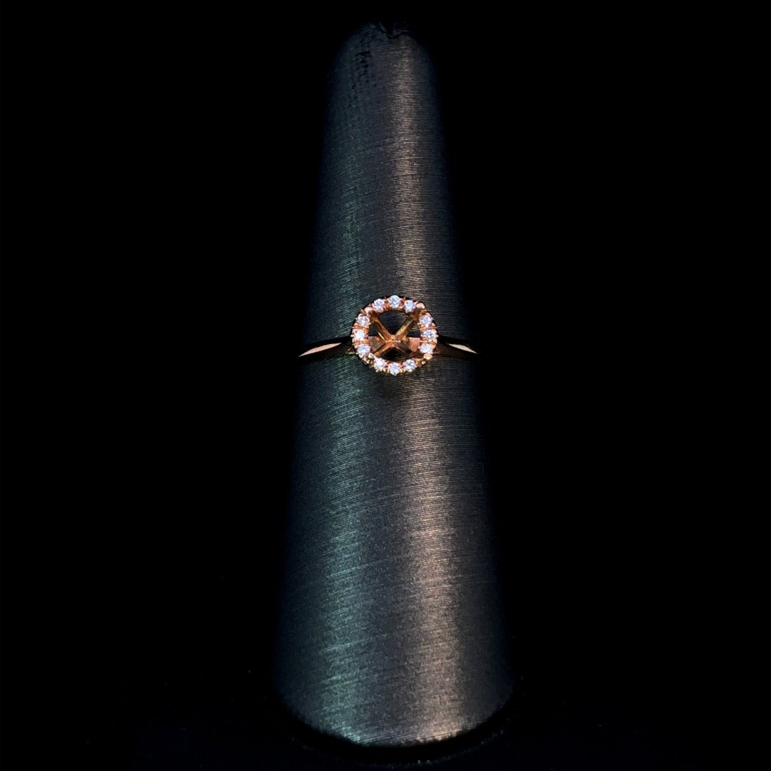 Indulge in timeless elegance with our beautiful diamond semi mount. Featuring a dazzling round diamond halo & .05ctw of round diamond accents on a smooth 14kt rose gold band. Customize with your favorite round center stone from our unbeatable selection of loose stones! Price is for the semi mount only. Center stone will be added at an additional cost. This ring is a size 7. If that size is not a perfect fit, first time sizing is free at the time of purchase. Additional sizing fees may apply.