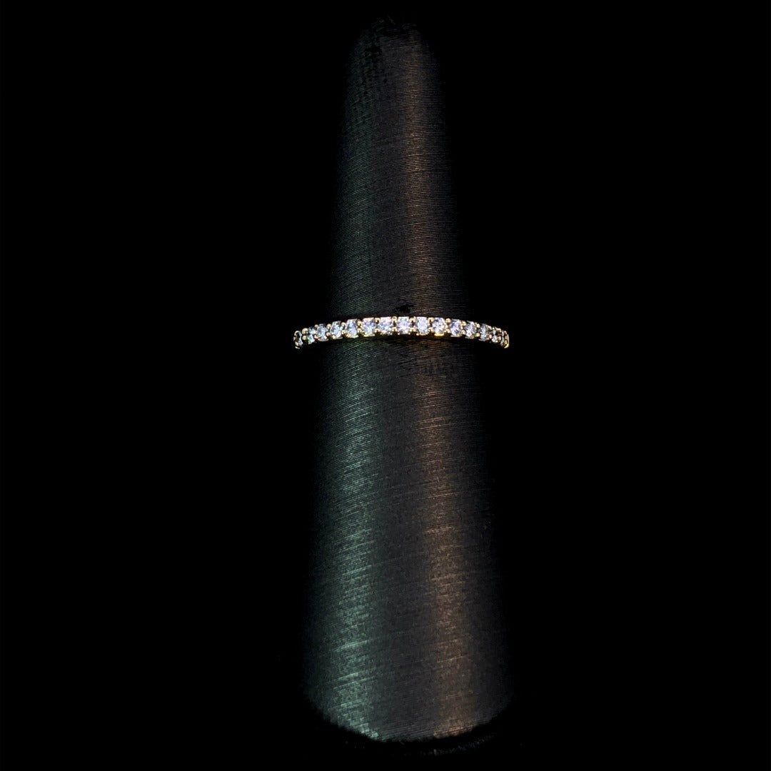 Celebrate your eternal love with our exquisite diamond band! Featuring .20ctw of sparkling, round diamonds set in luxurious 14kt yellow gold, this band exudes elegance and charm. Embrace timeless beauty with this classic design that will be a cherished symbol of your commitment. This ring is a size 6.5. If that size is not a perfect fit, first time sizing is free at the time of purchase. Additional sizing fees may apply.