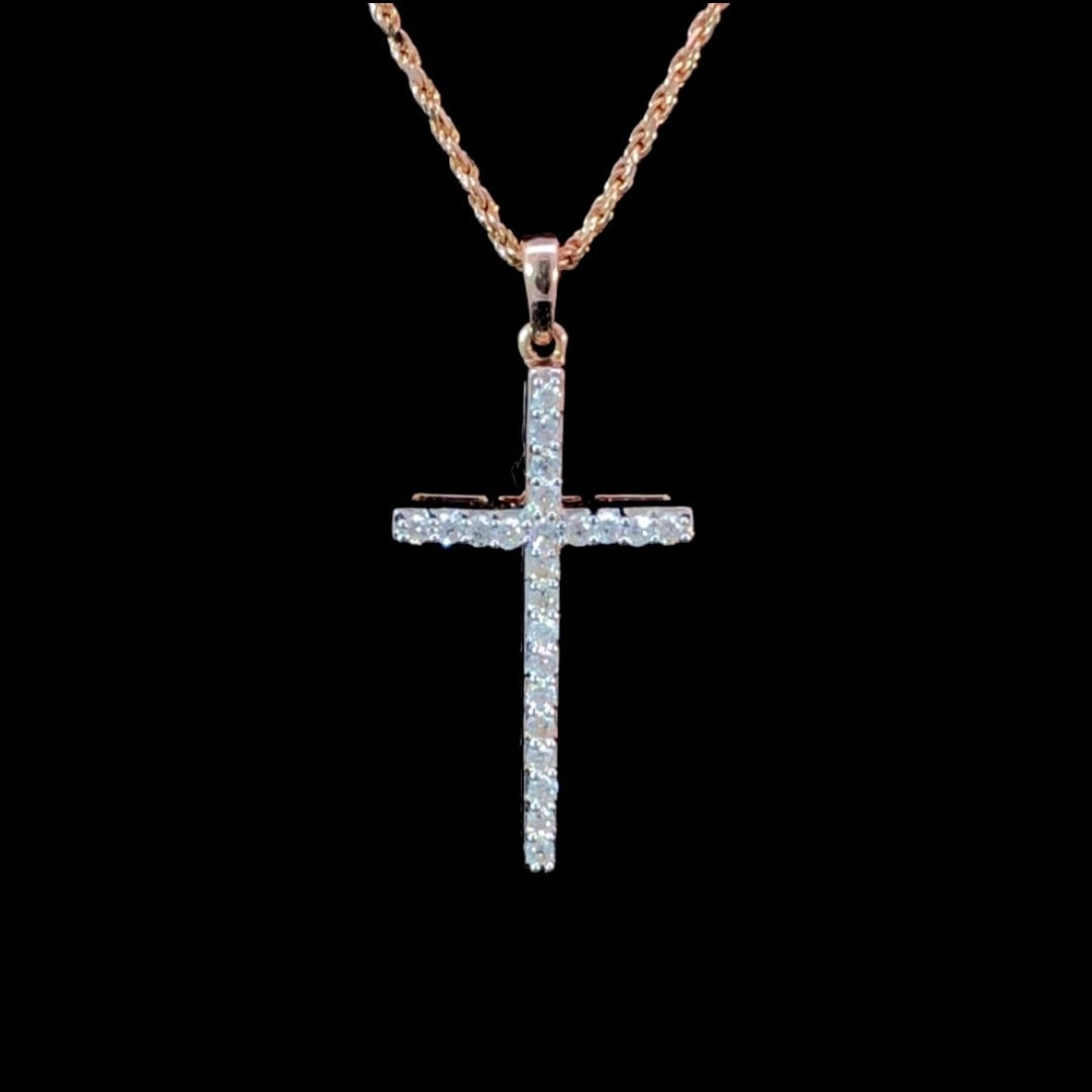 Adorn yourself with this beautiful .25 ctw diamond cross pendant set in luxurious rose gold. Let its sparkling diamonds and timeless design enhance your everyday style. Capture the essence of faith and fashion with this exquisite accessory! Chain is not included.