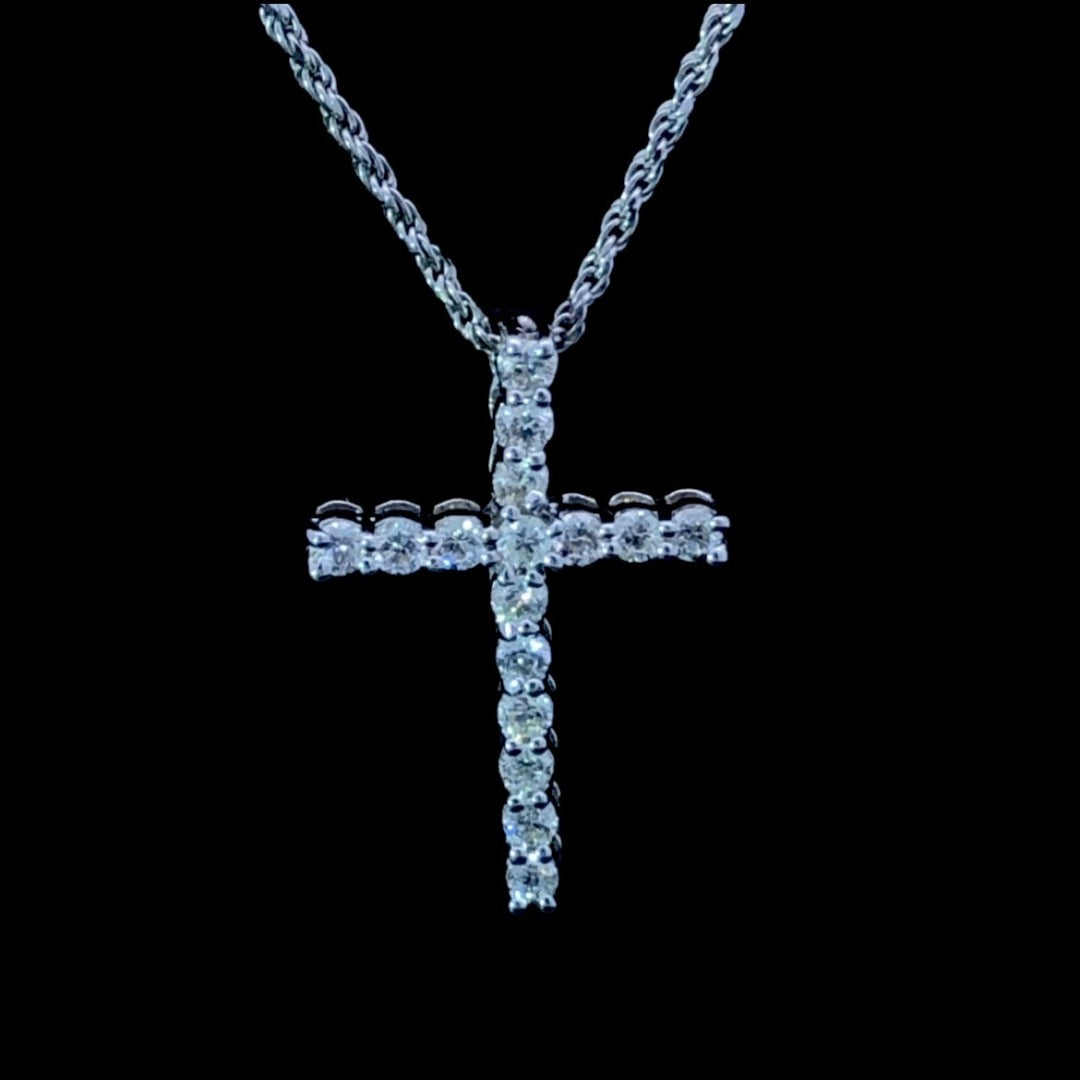 This stunning .48 ctw diamond cross pendant is set in a timeless 14 kt white gold setting. The round diamonds provide exceptional sparkle and brilliance. This classic design is perfect for any occasion. Chain is not included.