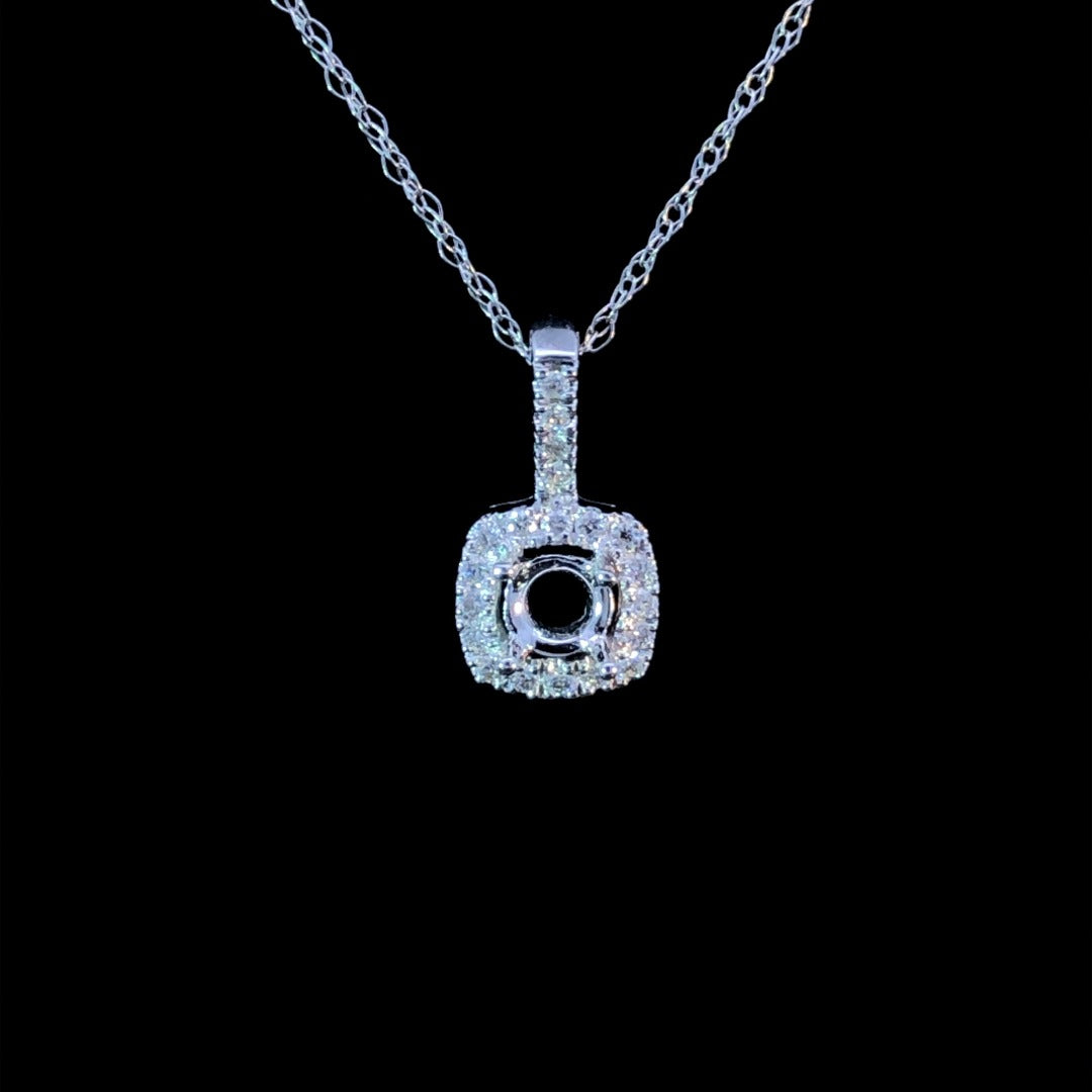 Enjoy the classic elegance of this diamond halo pendant mounting, crafted in 10kt white gold. Featuring .10ctw of round diamonds and a place to hold the center stone of your choice, this pendant is the perfect accessory to add sophistication and glamour to any outfit. Price is for mounting only. Center stone will be added for an additional charge. Chain is not included.