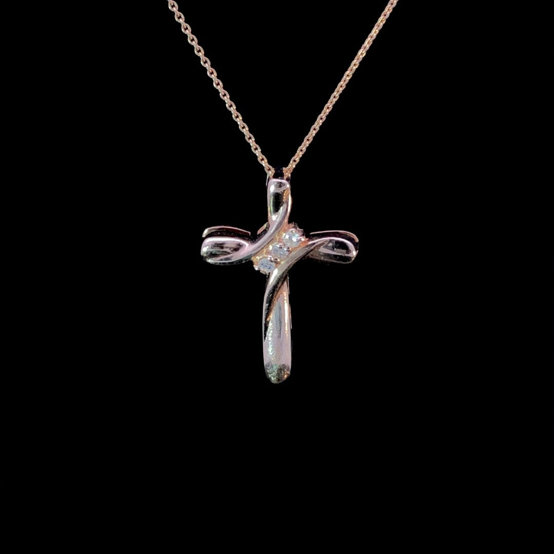This classic 14kt rose gold cross is timeless in style, featuring a diagonal line of brilliant .05ctw round diamonds for a subtle sparkle. Its elegant design is sure to be treasured for generations. Chain is not included.