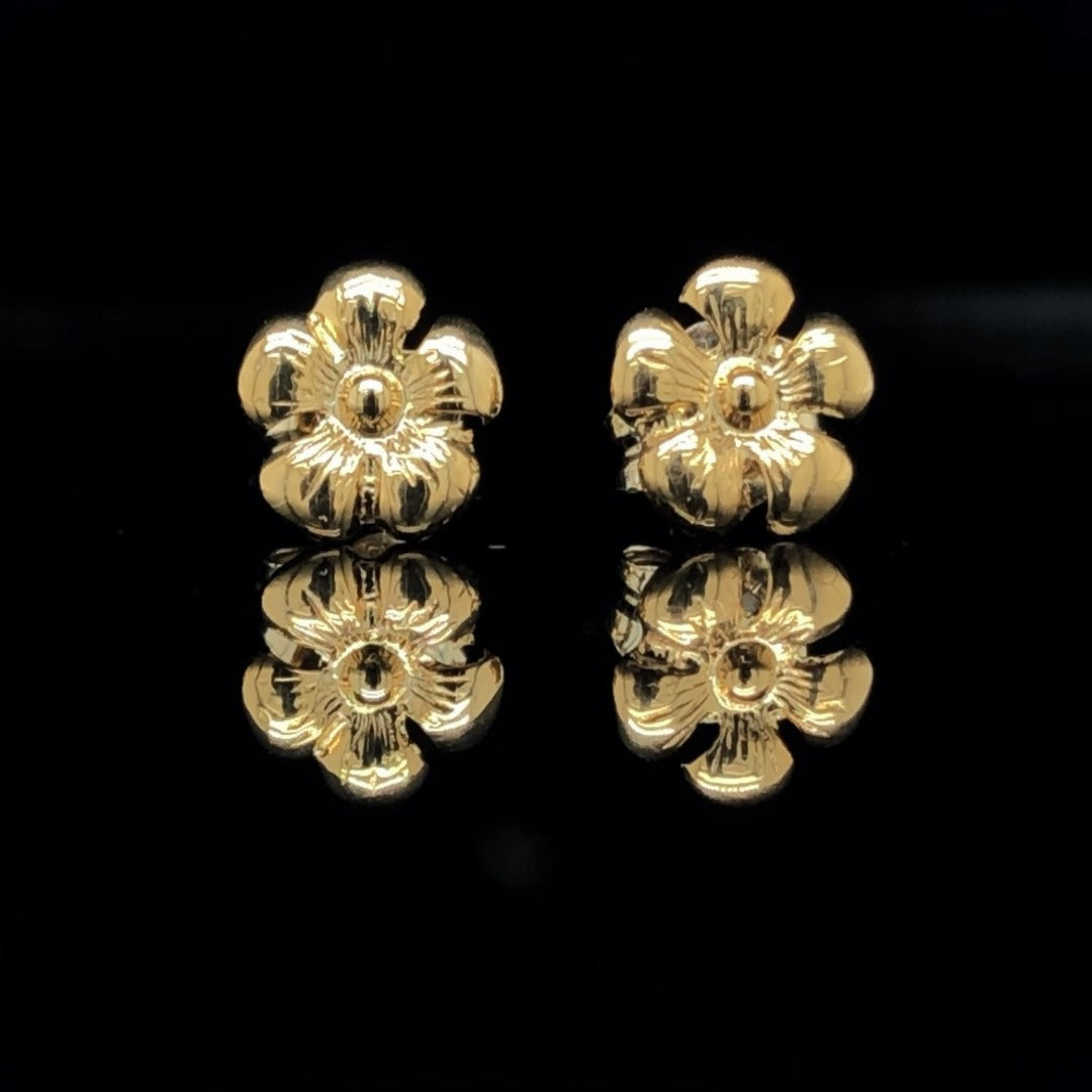 These exquisite stud earrings are crafted from 14 karat yellow gold, forming a subtle yet alluring floral design. Enjoy the delicate beauty of this timeless accessory that is sure to bring an air of sophistication to any outfit.