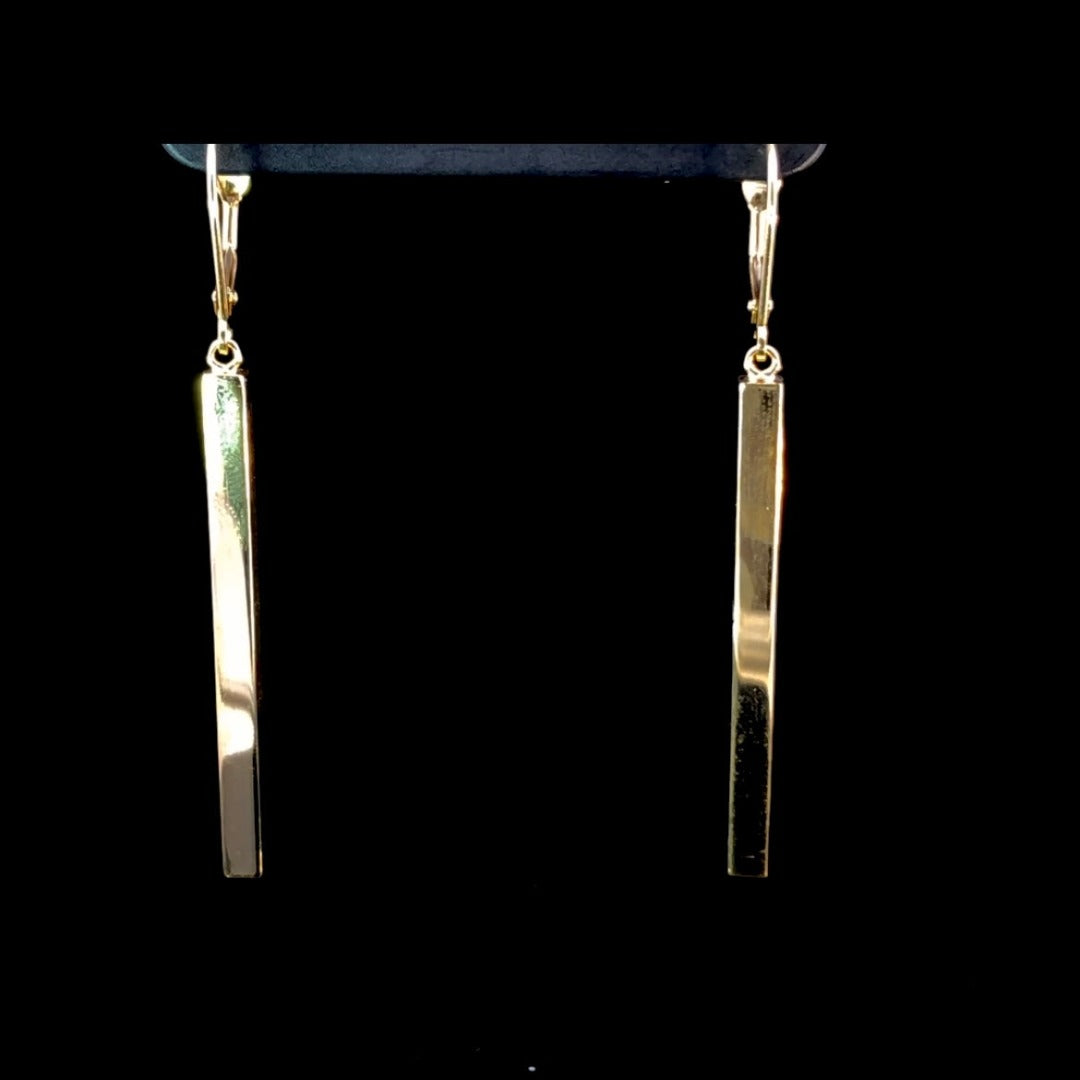 These 14kt yellow gold drop dangle bar earrings evoke a sense of timeless elegance and modern sophistication. In their delicate drop detailing, they offer the perfect combination of classic and contemporary style to elevate any outfit. Their eye-catching gold color and timeless shape will add a touch of luxury to any look.