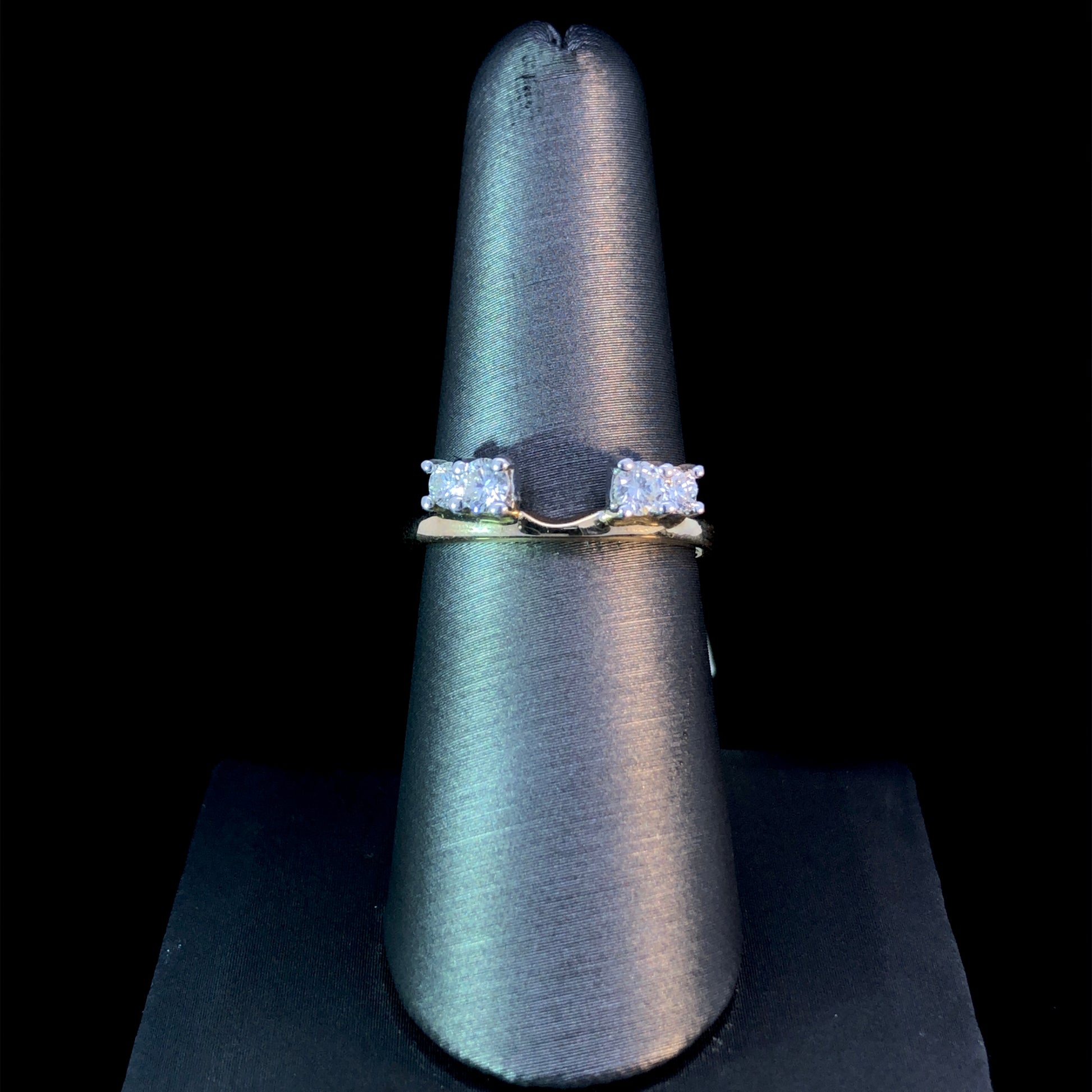 This eye-catching diamond ring enhancer is a sophisticated way to take your look to the next level. Crafted in 14kt 2-tone gold, .44ctw of round diamonds add the perfect sparkle and shine. Radiate a timeless elegance with this classic piece! This ring is a size 7. If that size is not a perfect fit, first time sizing is free at the time of purchase. Additional sizing fees may apply.