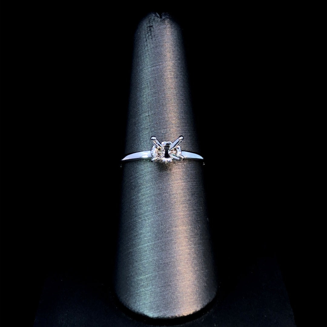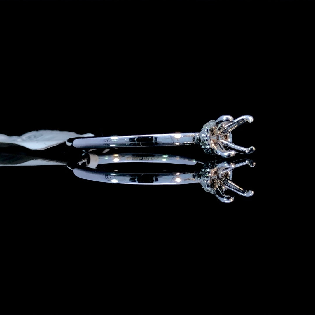 Elevate your bridal look with our breathtaking diamond semi mount. Crafted with .07ctw of dazzling round diamonds set in 14kt white gold, this modern piece features a unique East to West hidden halo. Customize with the oval center stone of your dreams from our selection of loose stones for a truly one-of-a-kind ring. Price is for the semi mount only. Center stone will be added at an additional cost. This ring is a size 7. If that size is not a perfect fit, first time sizing is free at the time of purchase. Additional sizing fees may apply.