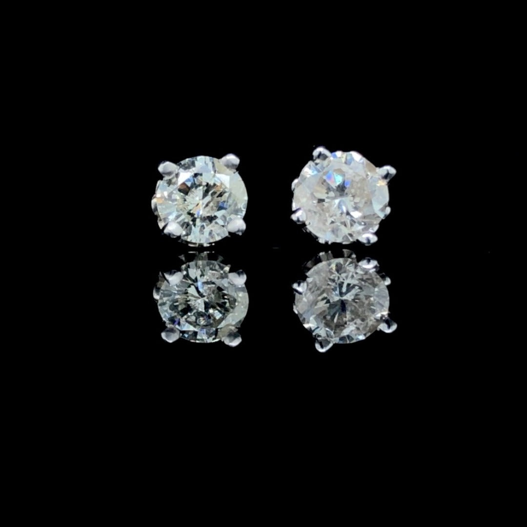 Discover these sparkling .87ctw round diamond studs, ensconced in 14kt white gold scroll mountings. Their luxurious design and classic silhouette make them a timelessly elegant addition to any jewelry collection. A sophisticated statement of style that never goes out of fashion.