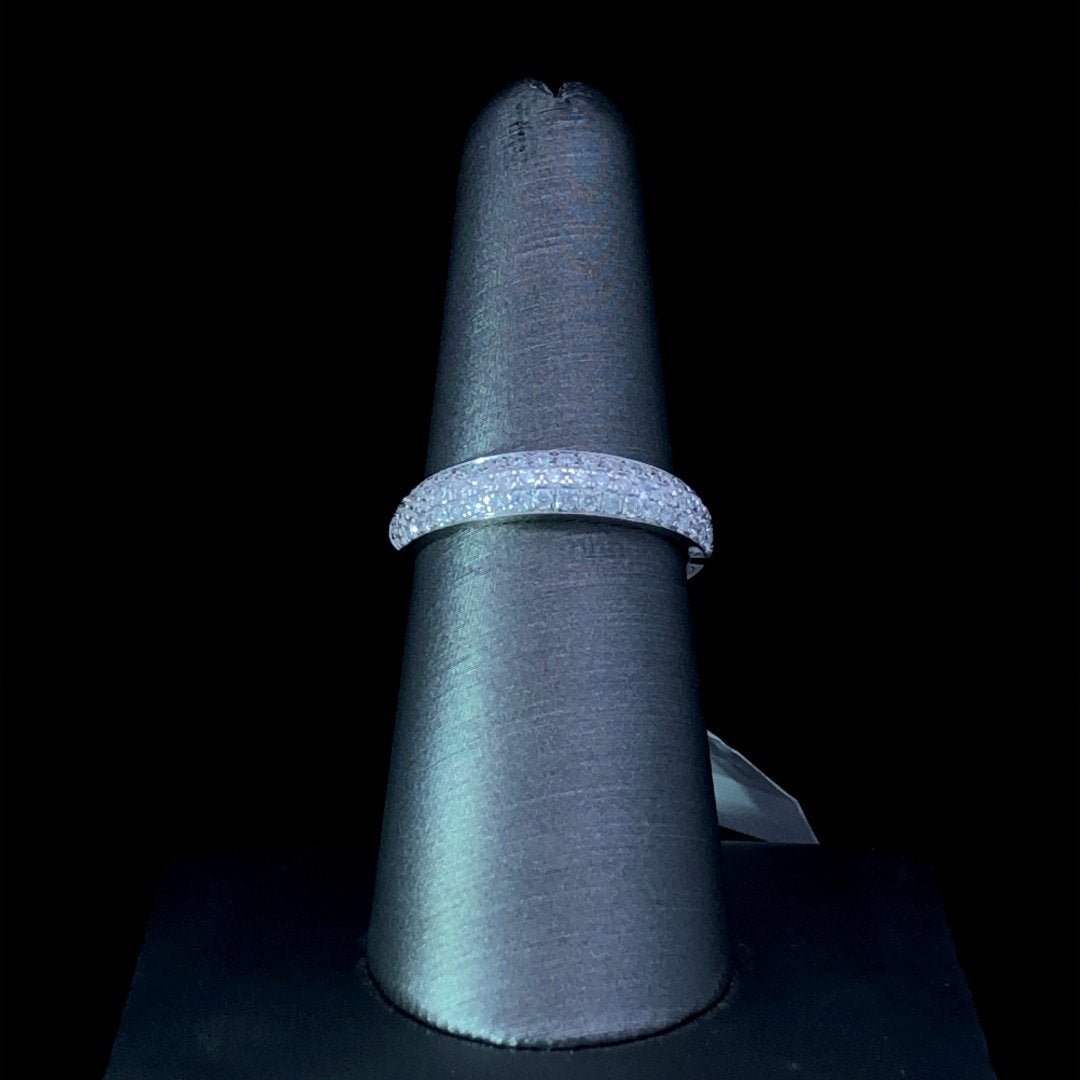 Delight in the timeless beauty of this 14kt white gold diamond band, glittering with .50ctw of round diamonds pave set along its luminous surface. An exquisite piece sure to captivate for years to come, this timeless piece is certain to add a touch of elegance and sophistication to any ensemble. This ring is a size 7. If that size is not a perfect fit, first time sizing is free at the time of purchase. Additional sizing fees may apply.