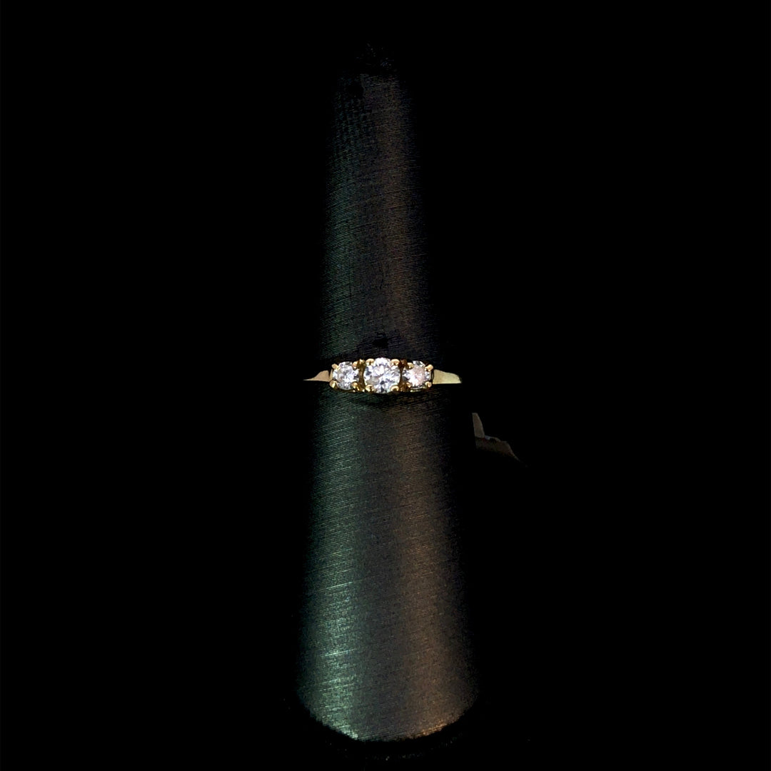 This classic 3 stone ring celebrates your past, present, and future with .25ctw of sparkling round diamonds set in 14kt yellow gold. A timeless and elegant piece that adds a touch of sophistication to any outfit. Show your love and commitment with this beautiful ring. This ring is a size 7. If that size is not a perfect fit, first time sizing is free at the time of purchase. Additional sizing fees may apply.