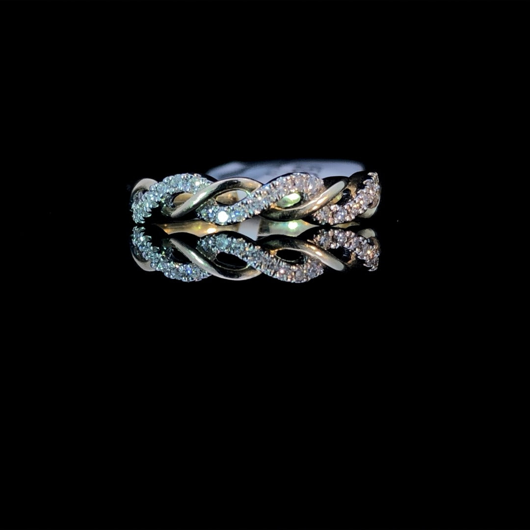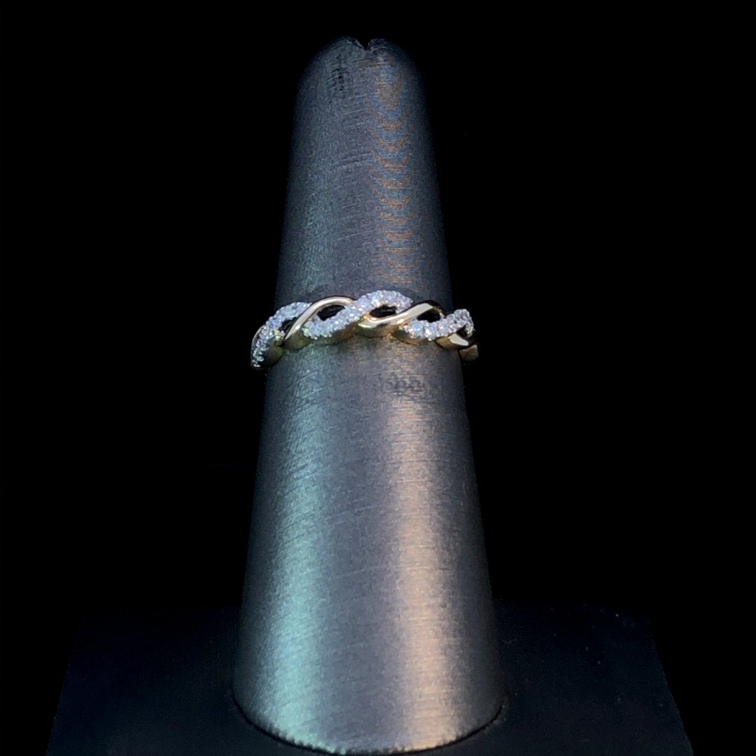 Elevate your everyday look with this sparkling diamond band! Crafted with 10kt yellow gold and .17ctw of round diamonds, this beautiful twist-style band will mesmerize with its luxurious sparkle. Perfect for adding a touch of elegance to any look. This ring is a size 6.5. If that size is not a perfect fit, first time sizing is free at the time of purchase. Additional sizing fees may apply.