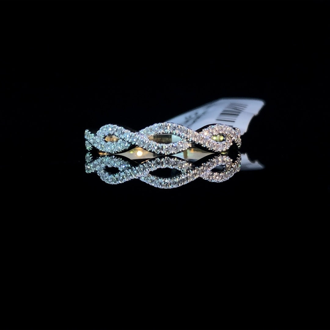 Thrill her with this luxurious diamond band. Crafted with 14kt yellow gold, it features a twist band adorned with .20ctw of round dazzling diamonds. Perfect for the classic woman who appreciates refined elegance, this diamond band promises to elevate her style. This ring is a size 6.25. If that size is not a perfect fit, first time sizing is free at the time of purchase. Additional sizing fees may apply.