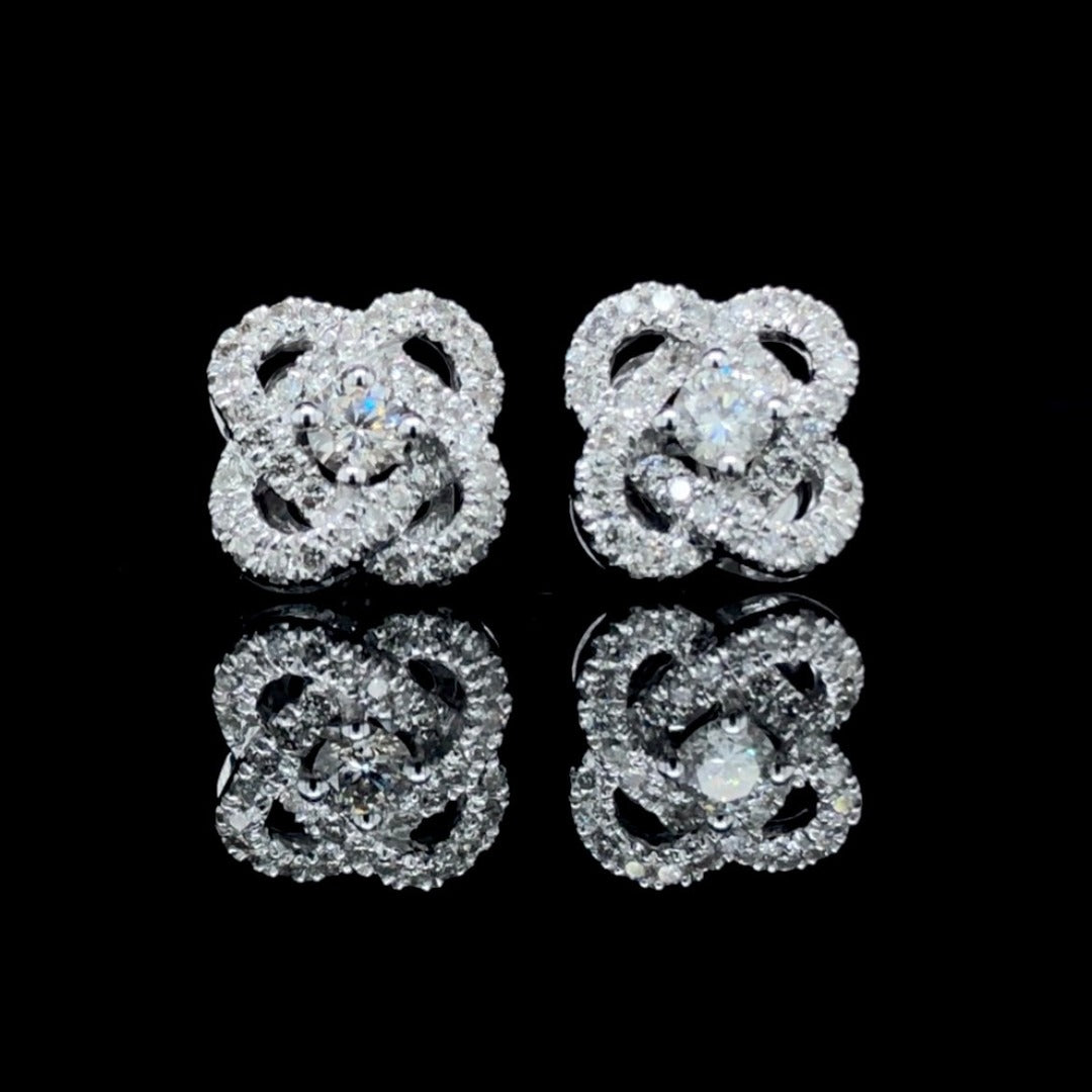 These beautiful 14kt white gold knot earrings will be cherished for a lifetime, adorned with .48ctw of sparkling diamonds. Make an elegant statement with their classic and timeless design. Indulge in a piece of effortless luxury!