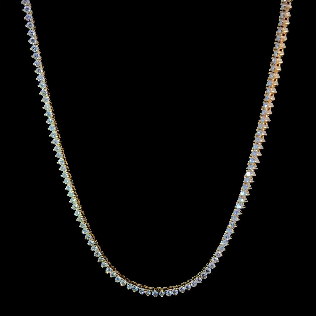 A timeless beauty, this diamond tennis necklace is crafted with sophistication and elegance in mind. Showcasing 4.82ctw of round diamonds that are set in 14kt yellow gold, it's the perfect accompaniment to any special occasion. Delicately crafted to be 18 inches in length, it's a luxurious choice that will make you shine!