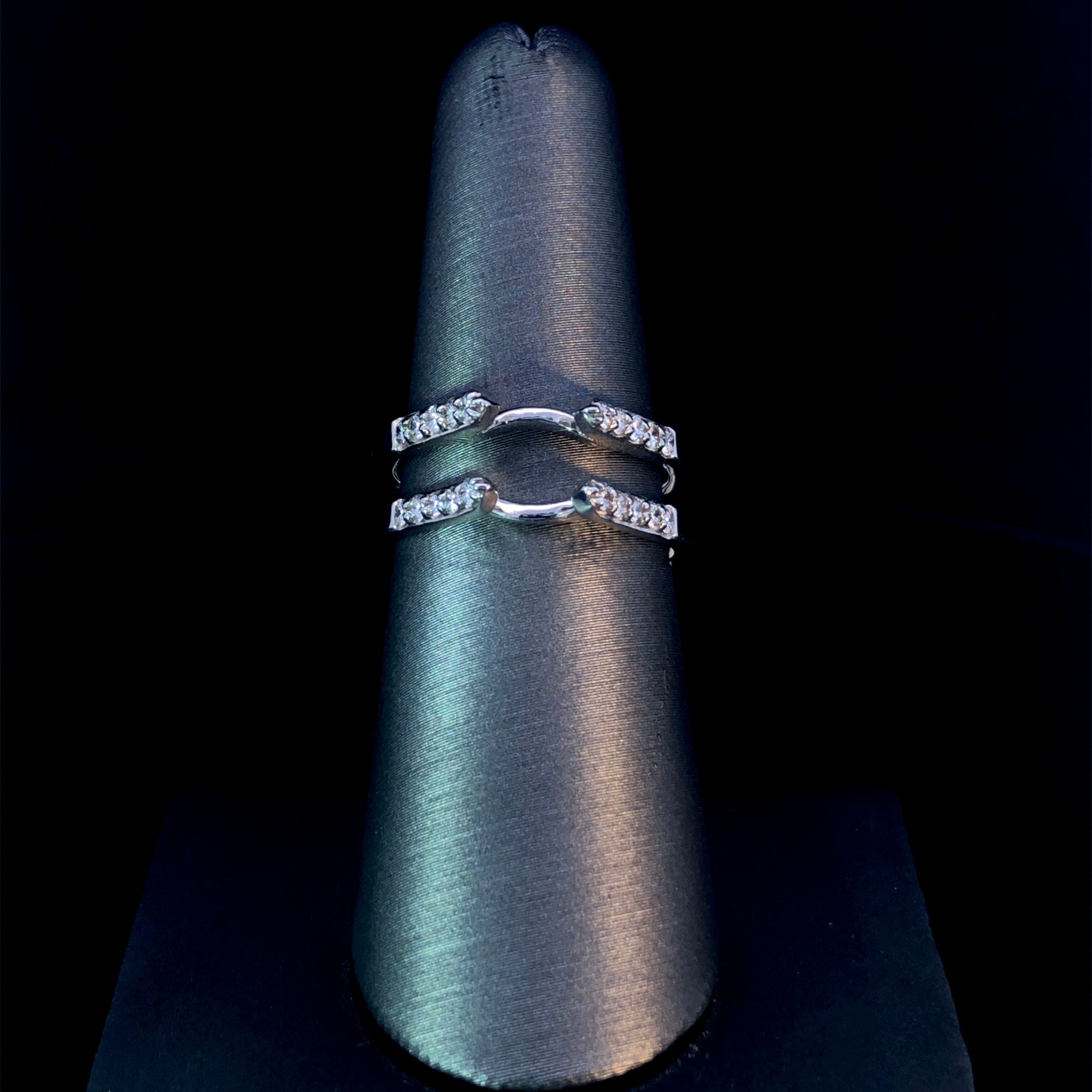 Instantly elevate the look and feel of your bridal set with this classic diamond ring guard. Crafted in 14kt white gold, the exquisite design holds .50ctw of sparkling round diamonds, bringing a touch of luxury and exclusivity to your special set. This ring is a size 7. If that size is not a perfect fit, first time sizing is free at the time of purchase. Additional sizing fees may apply.