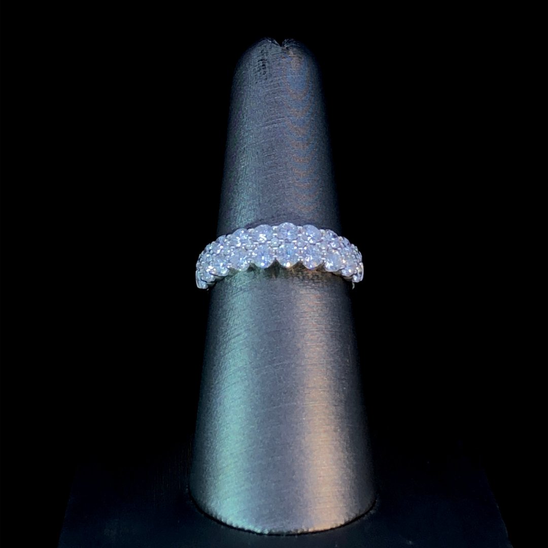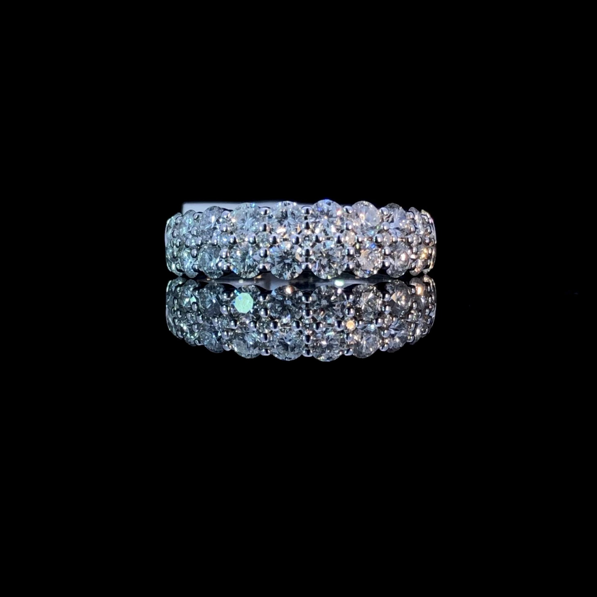 Celebrate a cherished milestone with this beautiful diamond anniversary band. Glittering 1.50 carats of round diamonds, set in 14kt white gold, create a dazzling ring sure to spark joy. Need a special anniversary gift? Look no further! This ring is a size 7. If that size is not a perfect fit, first time sizing is free at the time of purchase. Additional sizing fees may apply.
