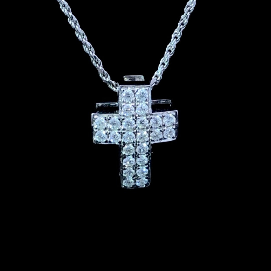This beautiful .40ctw diamond cross pendant promises to be the perfect addition to any jewelry lover's collection. Crafted in 14kt white gold, it showcases two rows of sparkling round diamonds that will no doubt dazzle the wearer. With its timeless design and superior quality, this pendant is sure to be a cherished piece for years to come. Chain is not included.