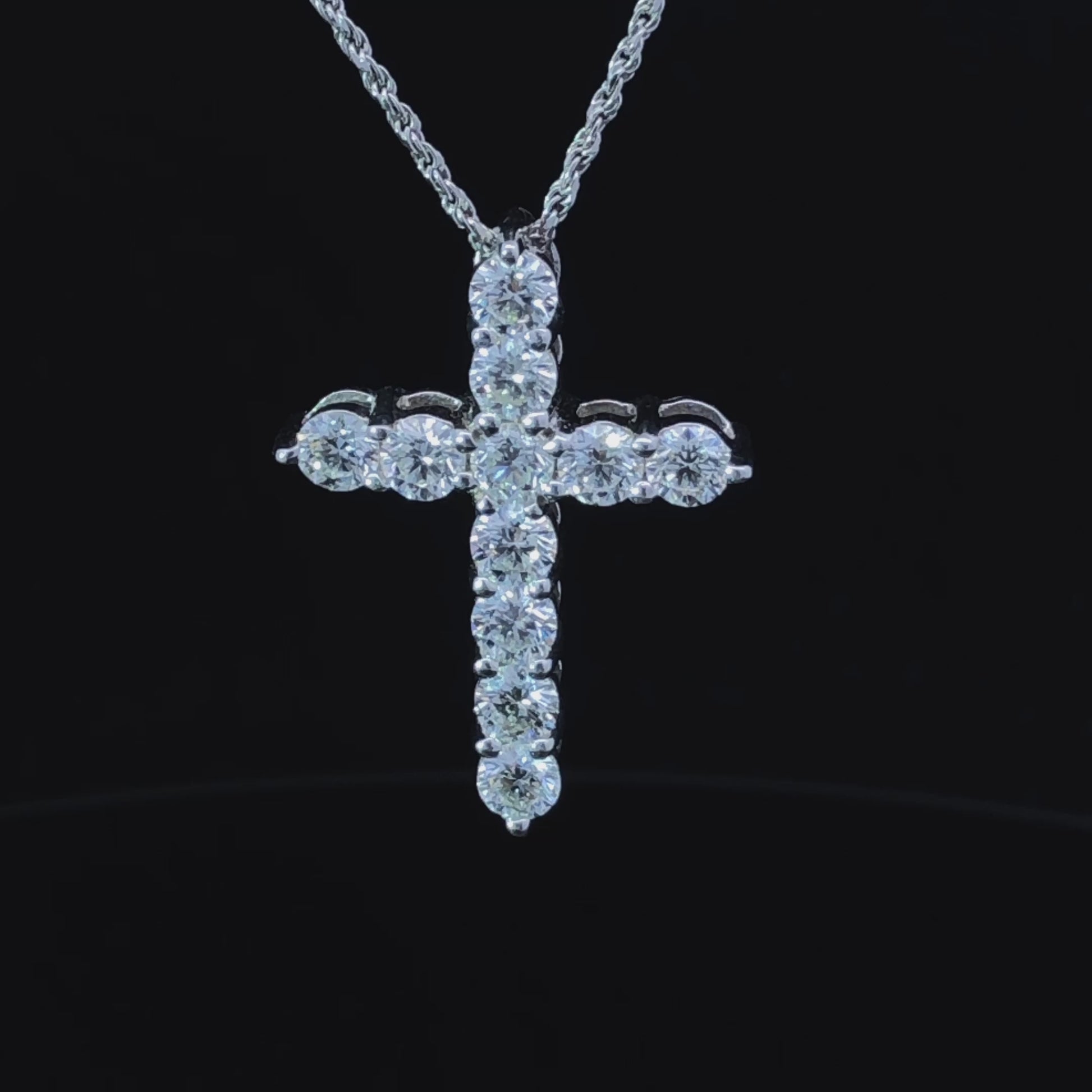 This exquisite 14kt white gold cross pendant features 2.00ctw of round diamonds for a timeless look. The contemporary design enhanced by the sparkle of diamonds will make a beautiful addition to any wardrobe. Chain is not included.