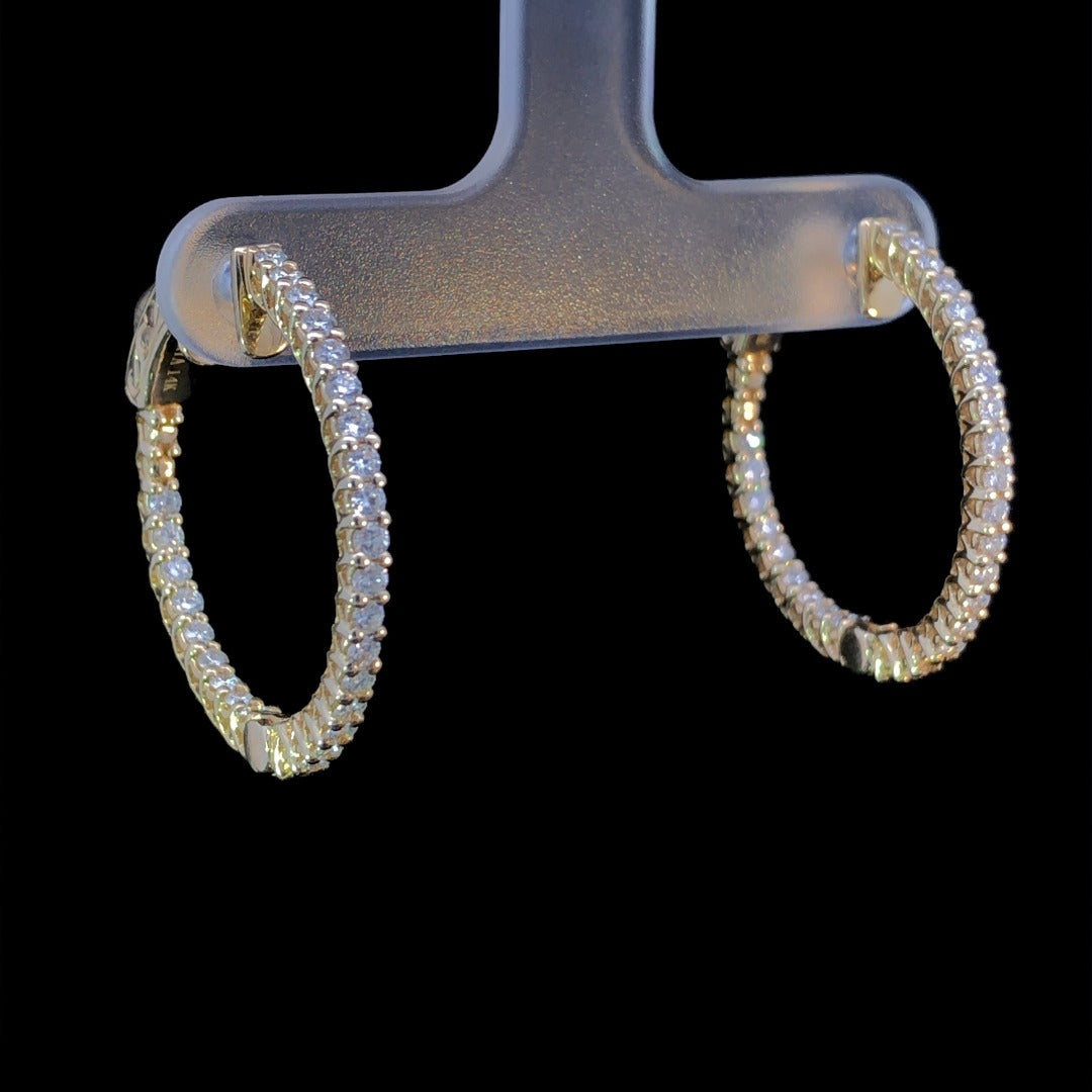These timeless diamond hoops present the perfect balance between modern and traditional. Crafted from 14kt yellow gold, they feature 1.00ctw of round diamonds, making them the ideal accessory for any occasion. Be the envy of your social circle with these stunning diamond hoops.