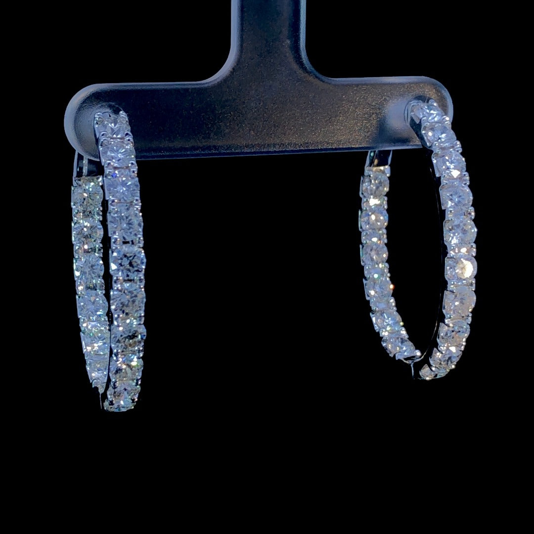 Allow yourself to be mesmerized by the sheer brilliance of these dazzling diamond hoop earrings. Crafted with 5.00ctw of round diamonds set in 14kt white gold, they'll beam with elegance and grace. Feel beautiful and sparkle every day!