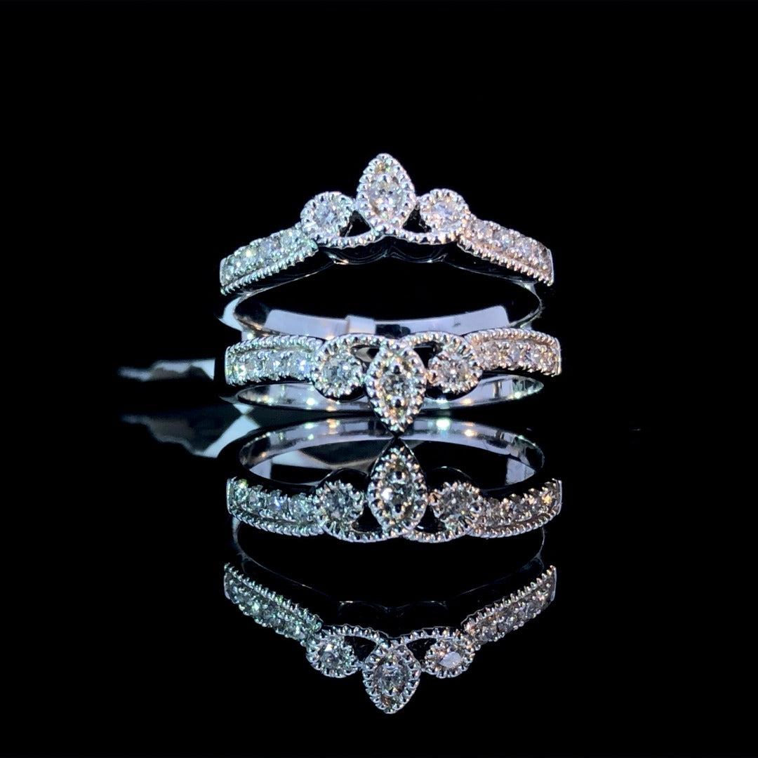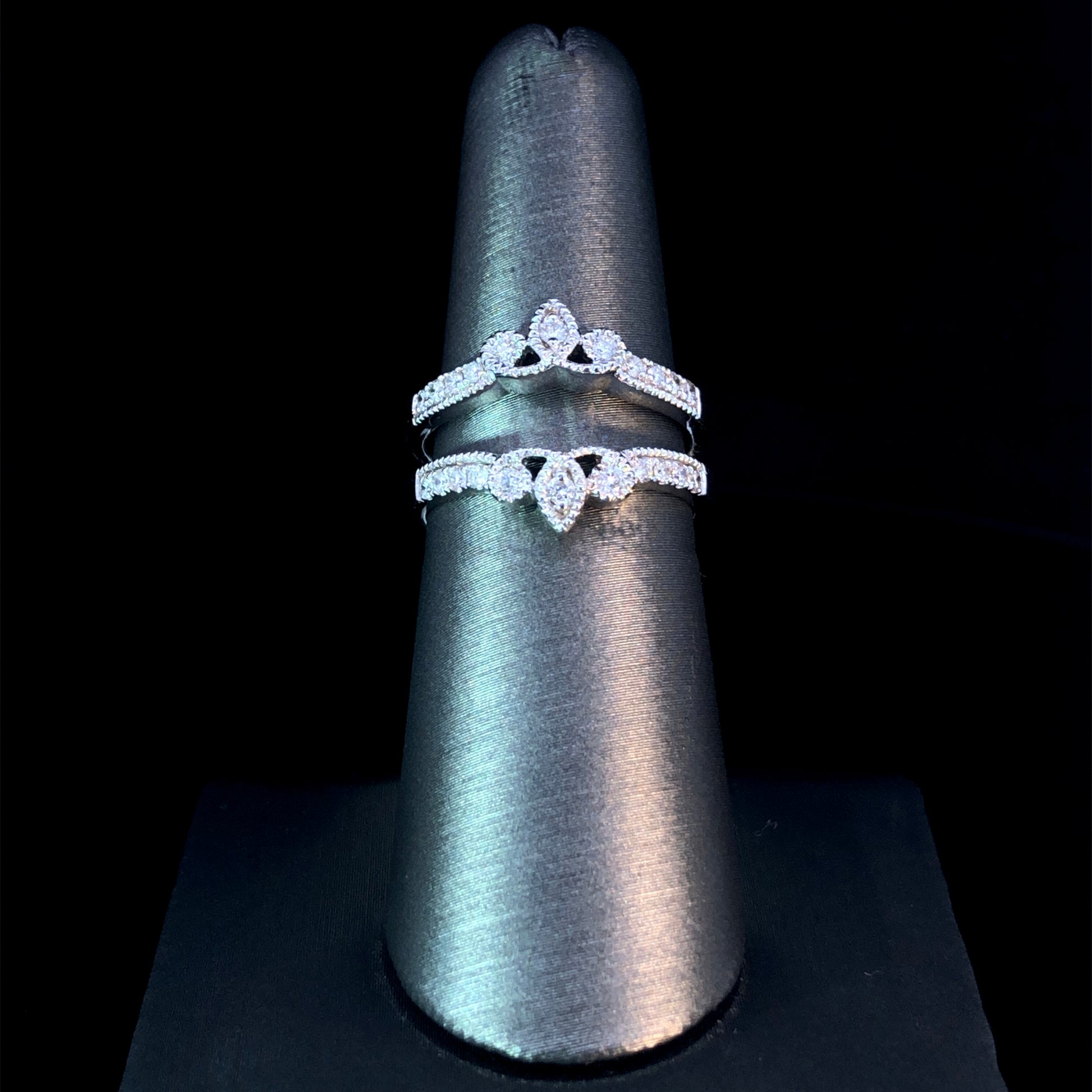 Make a statement with this sparkling ring guard! Crafted in 14kt white gold, it features striking twists and a milgrain design, enhanced by .33ctw of twinkling diamonds. Show your unique style with this truly elegant piece. This ring is a size 6.75. If that size is not a perfect fit, first time sizing is free at the time of purchase. Additional sizing fees may apply.