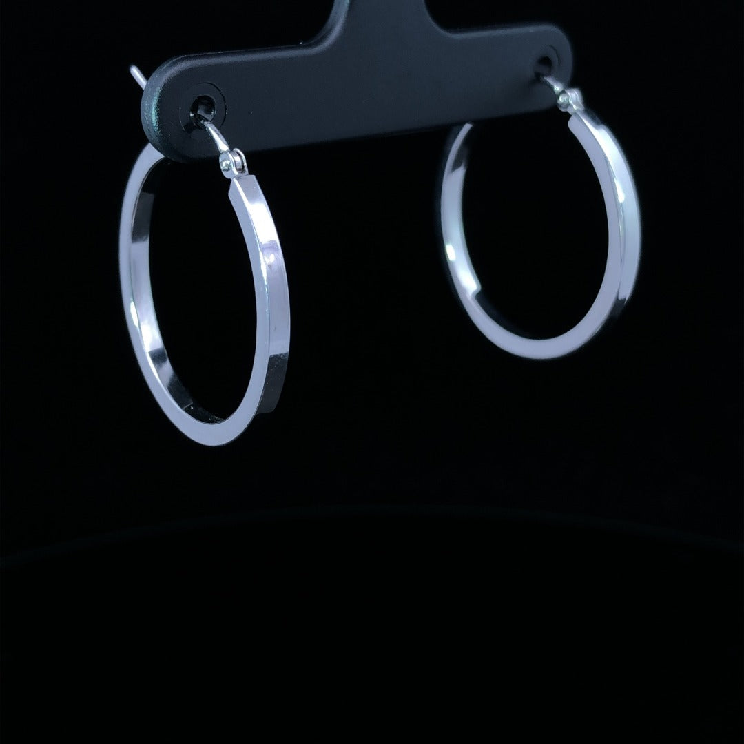 These 14kt white gold hoop earrings shimmer with elegance and sophistication. Crafted with 2mm square tube design, they will dress up any look. Perfect for any occasion, they will make a statement and add a touch of class.