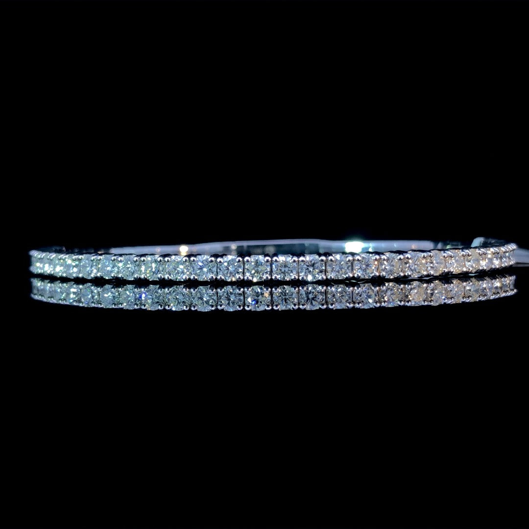 Adorn your wrist with exquisite beauty with this sparkling flex bangle bracelet. Crafted in 14kt white gold, 2.92ctw of dazzling round diamonds make it a luxurious and eye-catching piece. Let your style shine with this glamorous accessory!