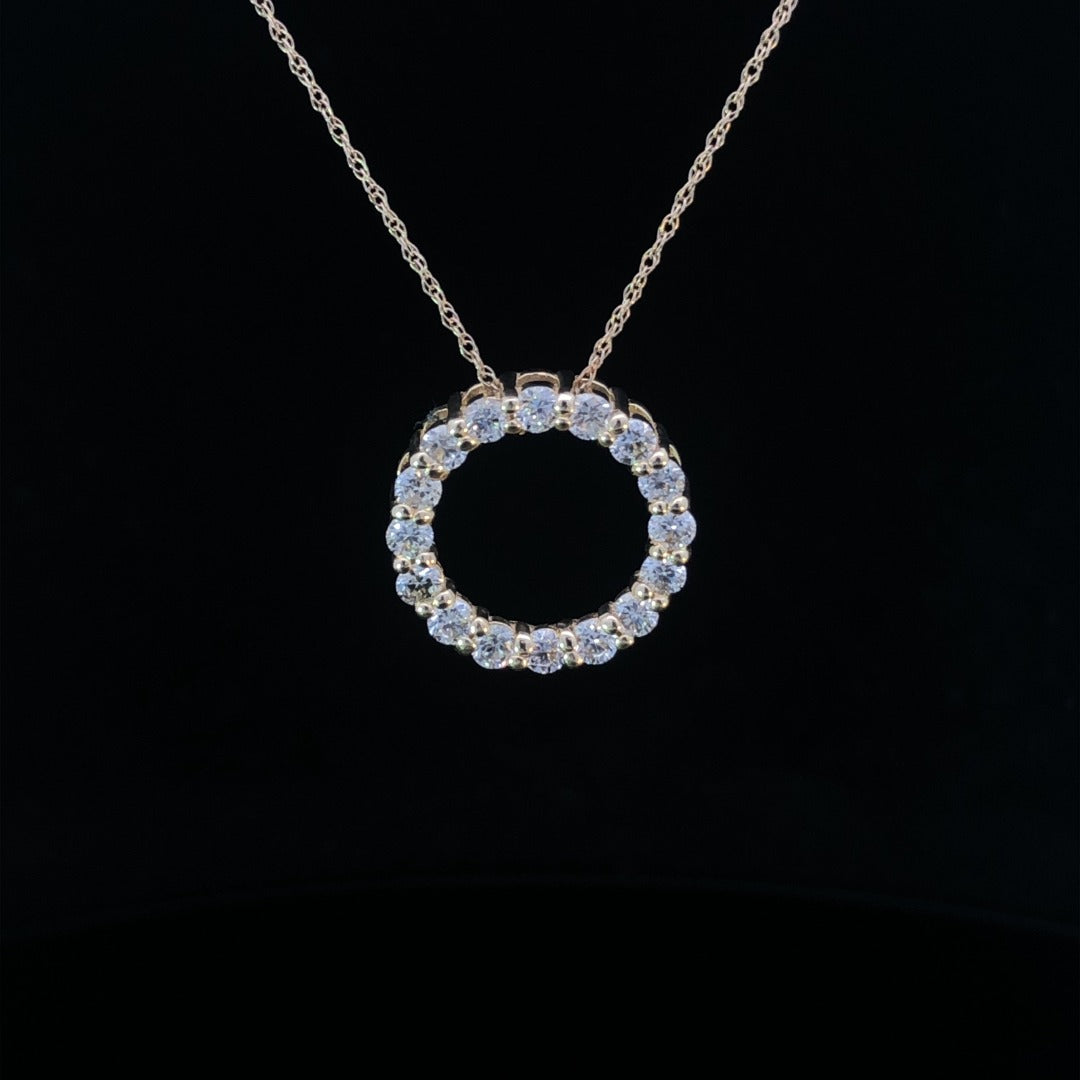 This luxe circle pendant is the perfect accessory for a special occasion. Crafted from 14kt yellow gold, it's set with .75ctw of sparkling round diamonds. Create a timeless look of sophistication and elegance with this stunning piece. Chain is not included.