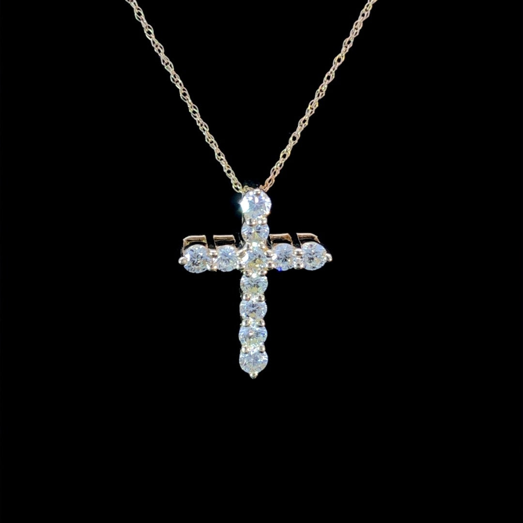 This timeless diamond cross pendant is crafted from 14 kt yellow gold and elegantly set with 0.76 ctw of dazzling round diamonds for a classic look. Show your faith with this timeless charm, perfect for any occasion. Chain is not included.