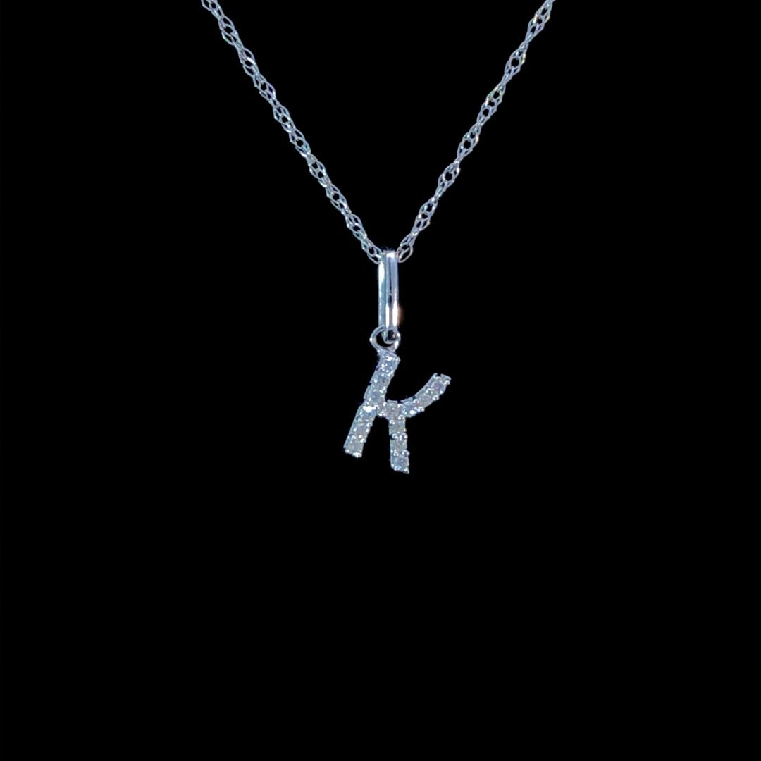 Add a touch of dazzling elegance to your everyday look with this exquisite letter "K" pendant! Featuring .05ctw of sumptuous round diamonds decoratively set in 10kt white gold, it's the perfect way to make a lasting impression! Chain is not included.
