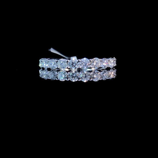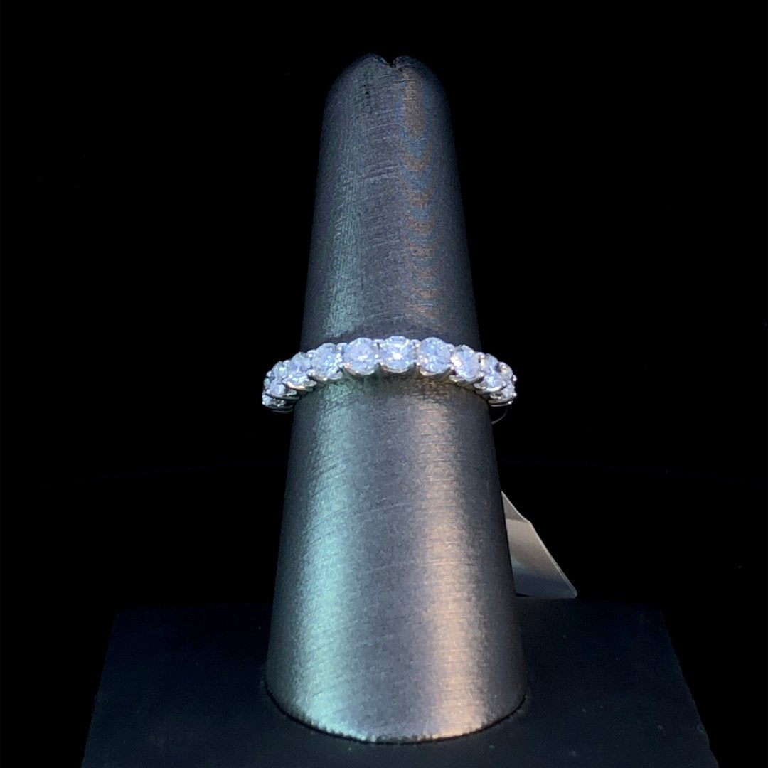 Radiantly encased in 14kt white gold, this timeless diamond band gleams with brilliance. Captivating round diamonds totaling 1.00ctw are elegantly arranged to compose a luxurious look of exquisite refinement. Perfect for the sophisticated woman, this piece is sure to complete any outfit with an exquisite touch of luxury. This ring is a size 7.25. If that size is not a perfect fit, first time sizing is free at the time of purchase. Additional sizing fees may apply.
