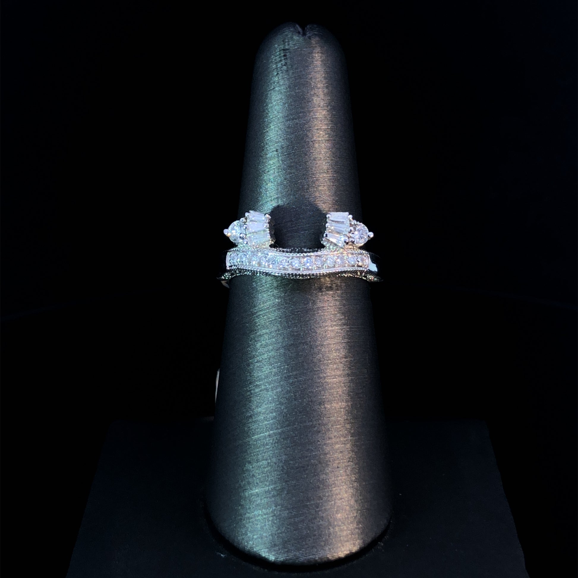 Experience luxury like never before with this exquisite ring wrap. Show off your style with .39ctw of magnificent round and baguette diamonds set in stunning 14kt white gold, finished with a milgrain detail. Crafted with care, it will transform any item into a unique and memorable statement piece. This ring is a size 7. If that size is not a perfect fit, first time sizing is free at the time of purchase. Additional sizing fees may apply.