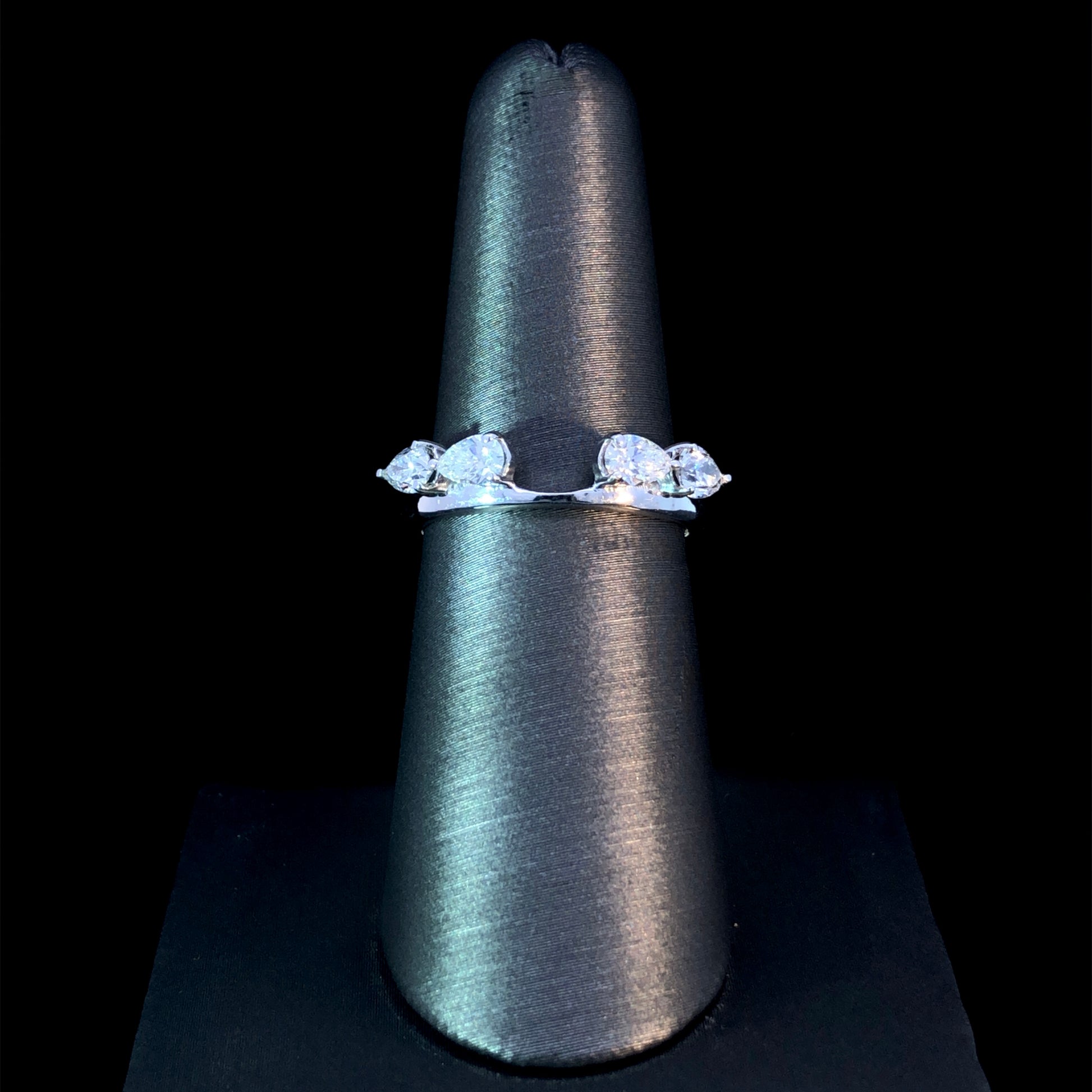 Surround your engagement ring with the timeless beauty of this 14kt white gold enhancer! Four awe-inspiring pear-shaped diamonds totaling .80ctw sparkle with majestic brilliance. Add a luxurious touch to your bridal look with this captivating enhancement! This ring is a size 7. If that size is not a perfect fit, first time sizing is free at the time of purchase. Additional sizing fees may apply.