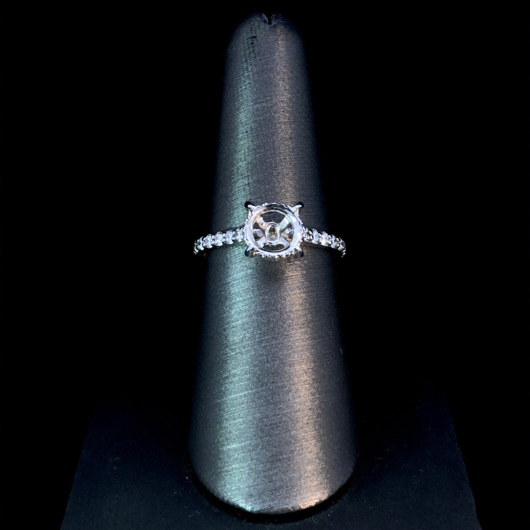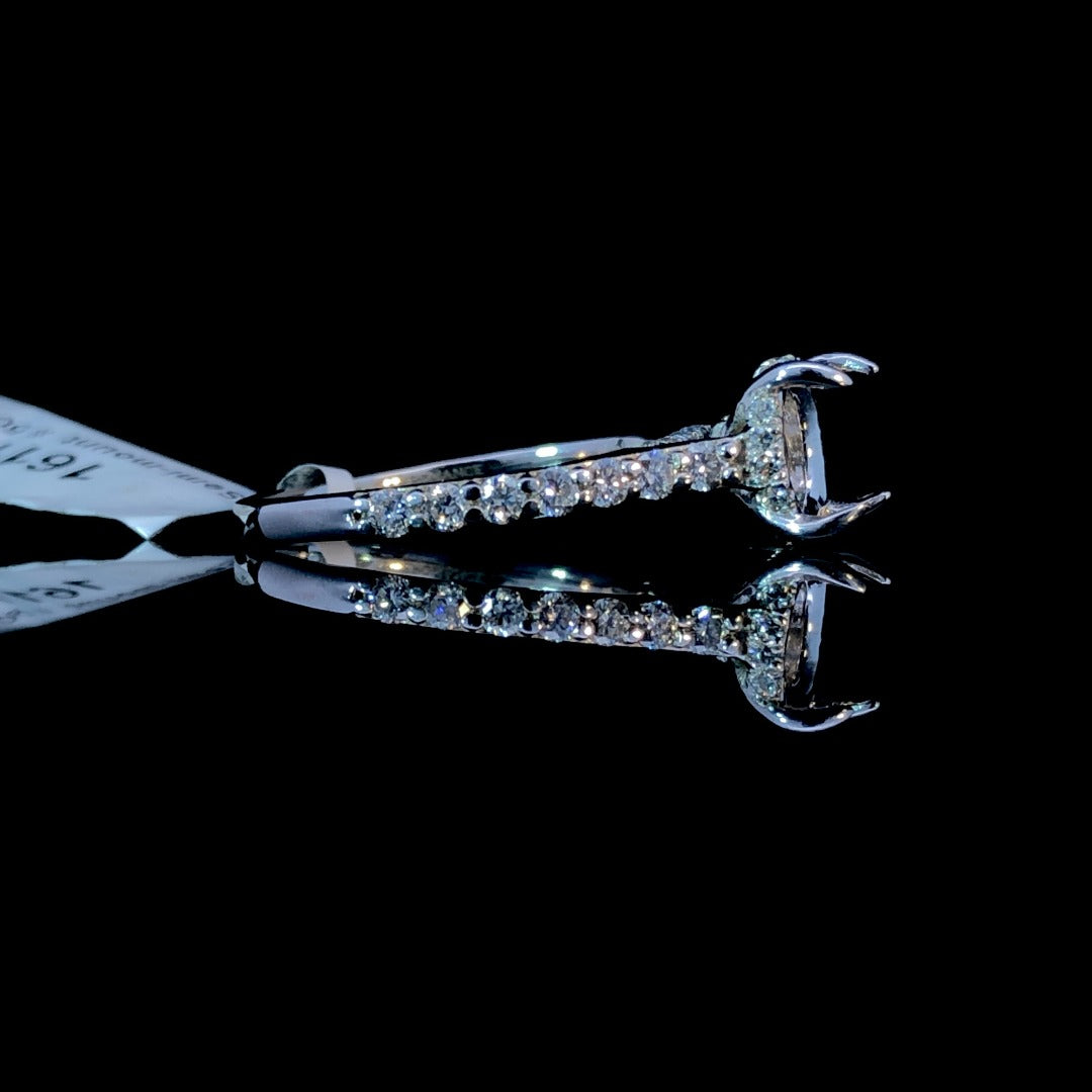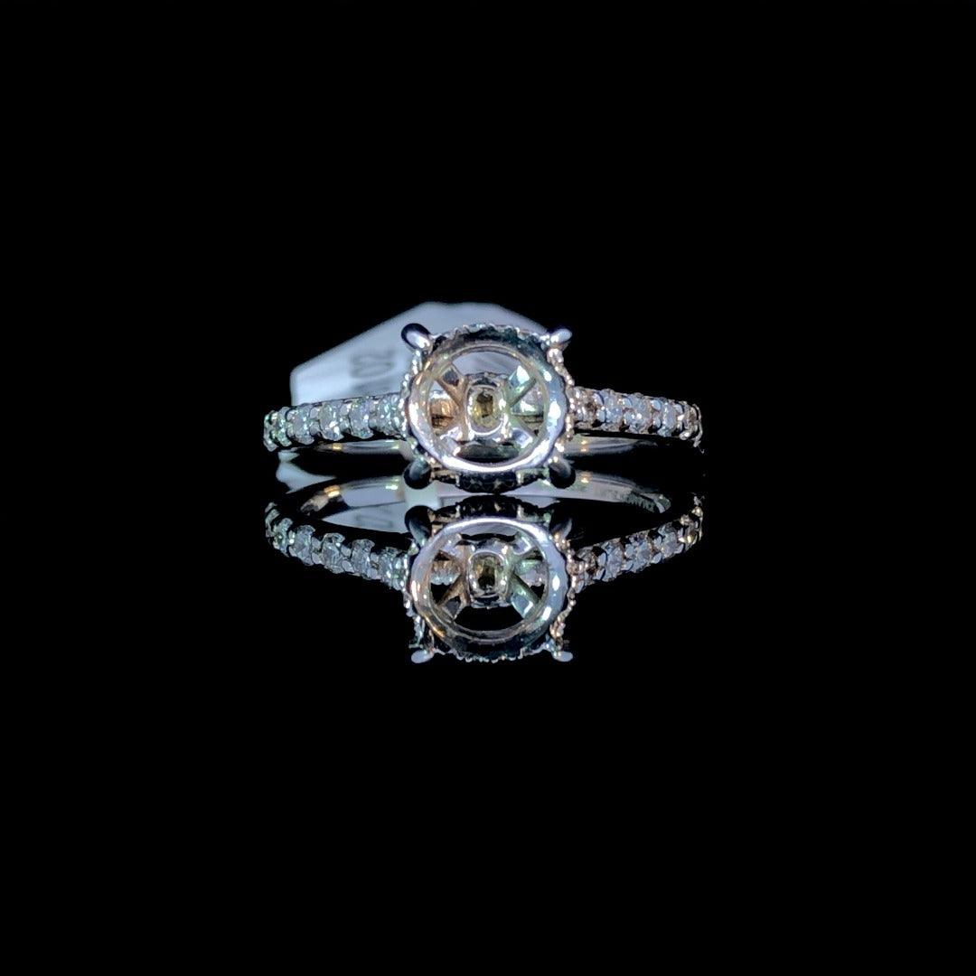 Elevate your style with this gorgeous diamond semi mount! Featuring a stunning hidden halo design with .57ctw of sparkling diamonds set in 14kt white gold, this chic and elegant piece will make you stand out in any crowd. Don't miss out on this gorgeous statement piece! Price is for the semi mount only. Center stone will be added at an additional cost. This ring is a size 7. If that size is not a perfect fit, first time sizing is free at the time of purchase. Additional sizing fees may apply.