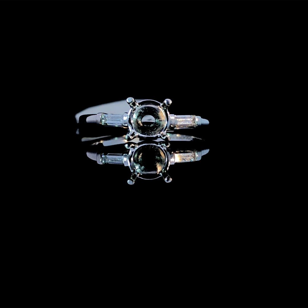 This classic diamond semi-mount ring features two baguette diamond side stones totaling 0.09 ctw, set in shimmering 14kt white gold. Complete this elegant piece by choosing your own center stone from our diverse collection of loose diamonds, allowing you to create a personalized and timeless ring. Price is for the semi mount only. Center stone will be added at an additional cost. This ring is a size 7. If that size is not a perfect fit, it can be sized up 2 sizes for free at the time of purchase. Additional sizing fees may apply.
