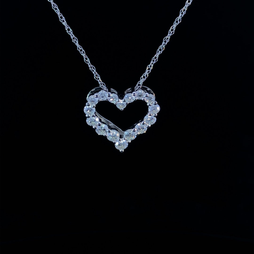This stunning diamond heart pendant is a perfect way to express your love. Showcasing .50ctw of dazzling round diamonds set in 14kt white gold, this timeless keepsake is sure to make a lasting impression on your loved one! Chain is not included.