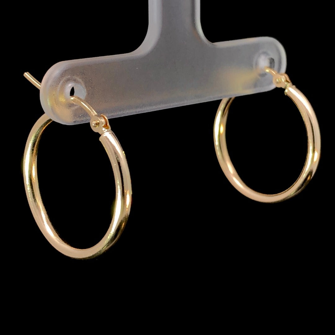 These timeless 14kt yellow gold hoop earrings are a luxurious addition to any wardrobe. Crafted with precision, they feature a classic design that will never go out of style. With a timeless and elegant design, these earrings are perfect for making a statement.