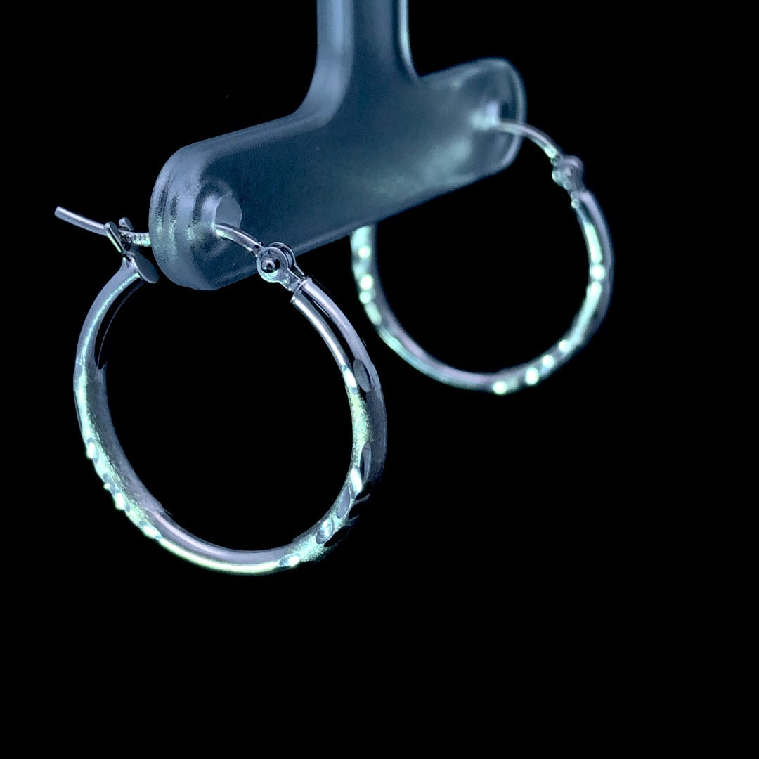 These exquisite 2mm 14kt white gold hoops feature a satin finish and a diamond-cut leaf design for an extra touch of shimmer. With their sophisticated and elegant design, they will be sure to elevate any look.