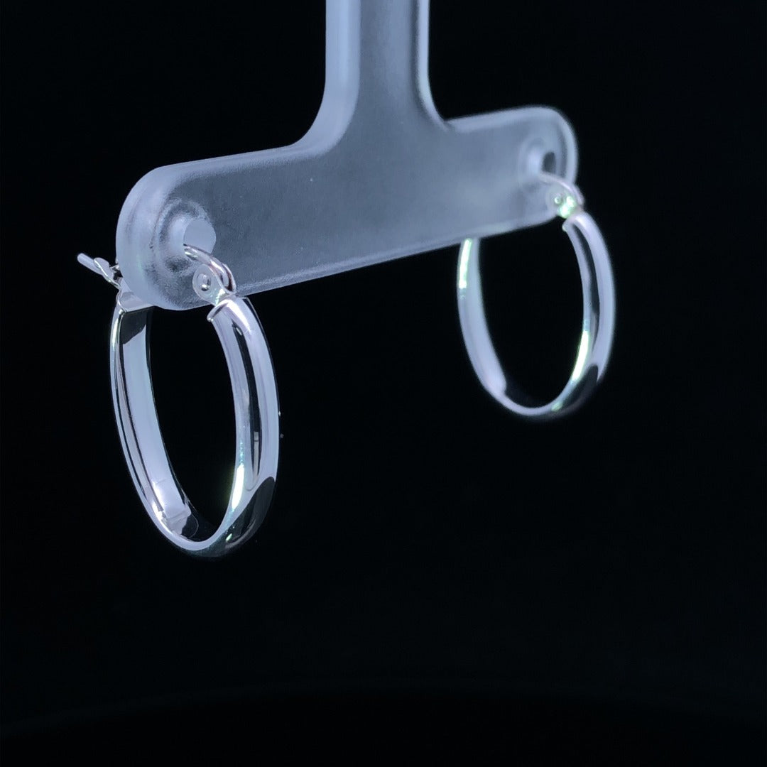 These elegant 2.75mm oval tube 14kt white gold hoop earrings offer a distinct, sophisticated look. With their luxurious design, they add a touch of understated sophistication to any look. Crafted with care, these earrings exude quality, sure to last a lifetime of wear.