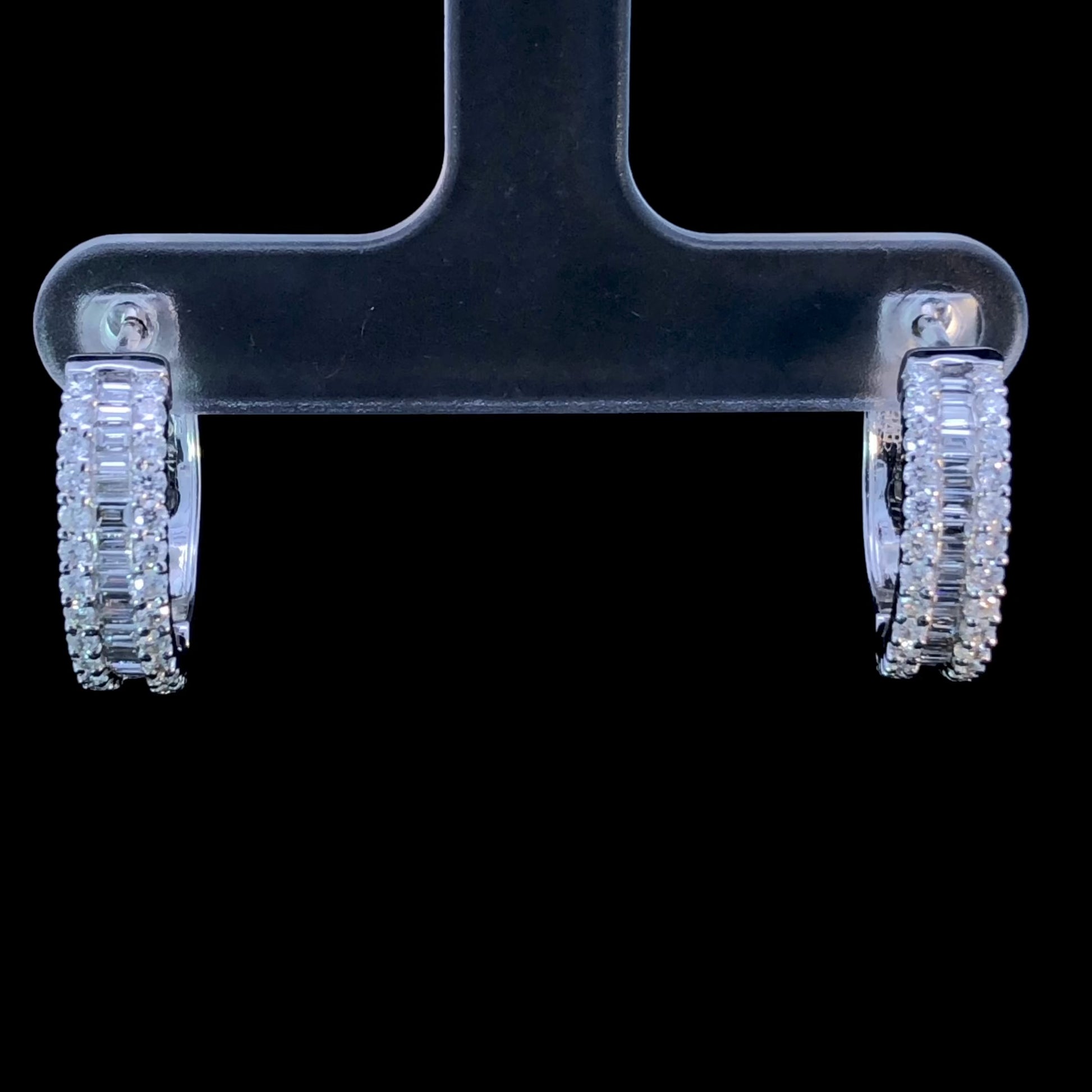 Make a sparkling statement of style with these dazzling 1.03ctw diamond hoop earrings. Crafted with a beautiful mix of baguette and round diamonds, set in classic 14kt white gold, these elegant earrings will be the perfect finishing touch to any ensemble.