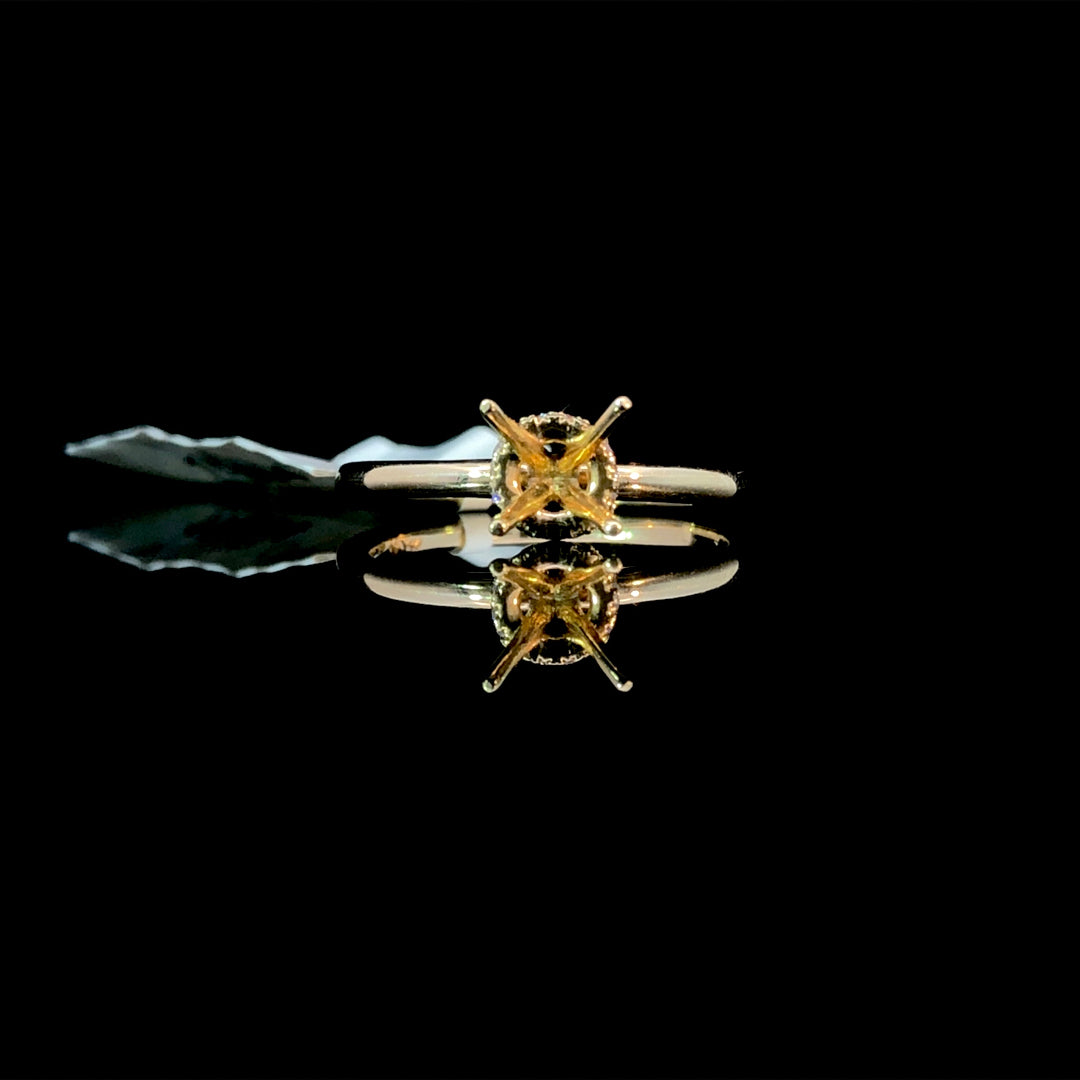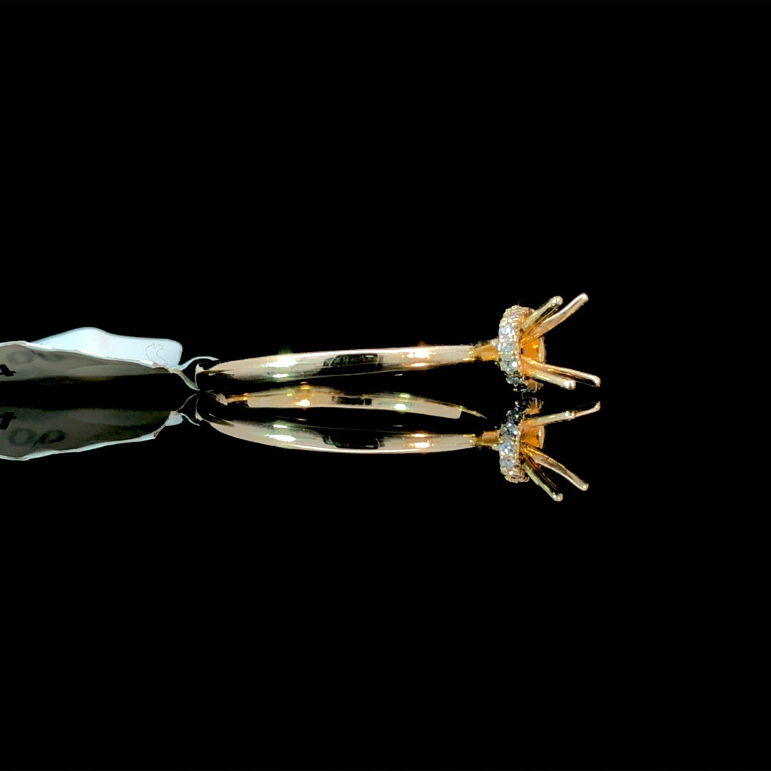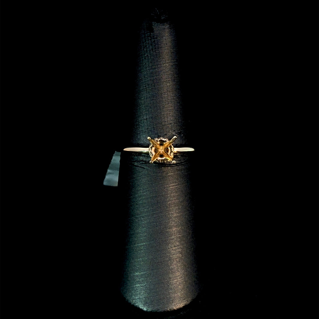 Build the engagement ring you've always wanted with this versatile semi mount. The hidden halo design showcases .07ctw of brilliant round diamonds in luxurious 14kt yellow gold, creating understated glamour that complements any center stone. Select from our extensive collection of loose diamonds and gemstones to personalize this chic setting to your exact preferences. Whether you're drawn to classic elegance or contemporary flair, this customizable piece empowers you to craft a ring that's authentically yours. Price is for the semi mount only. Center stone will be added at an additional cost. This ring is a size 7. If that size is not a perfect fit, first time sizing is free at the time of purchase. Additional sizing fees may apply.