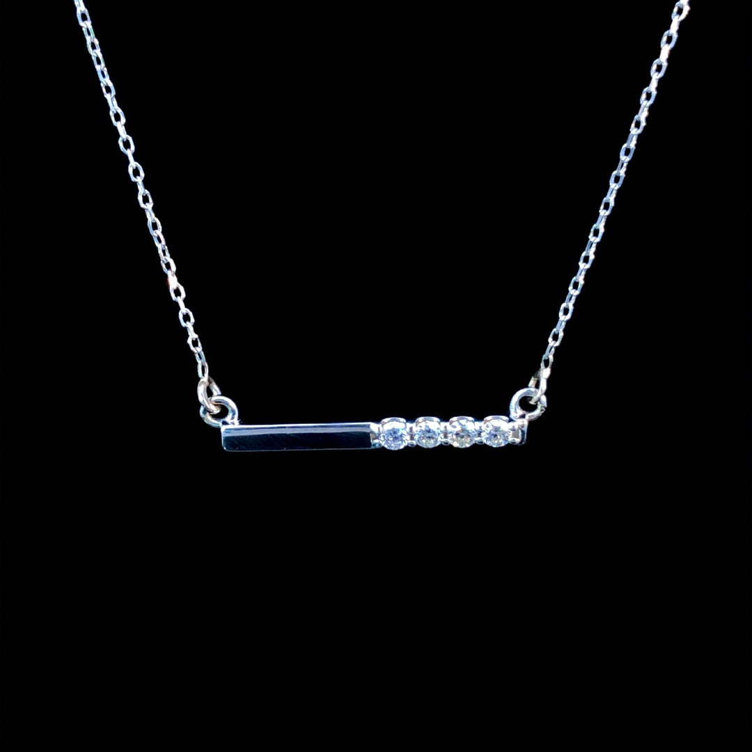 Look effortlessly stylish with this chic white gold bar necklace! The 14kt white gold is embellished with 4 shimmering diamonds totaling .15ctw for a timelessly elegant sparkle. Elevate any occasion with this timeless and luxurious piece.