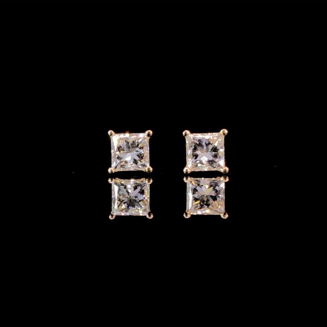 Discover the perfect sparkle with these exquisite 14kt yellow gold diamond stud earrings. Featuring .73ctw of glamorous princess cut diamonds, these earrings are sure to add a touch of elegance to any look. Perfect for special occasions or everyday wear, you'll soon fall in love with the beauty of these diamond studs!