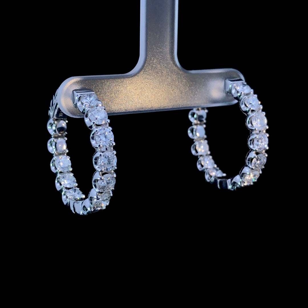 These luxurious 3.25ctw diamond hoops sparkle with brilliance from all angles! Crafted with 14kt white gold, they make an exquisite addition to any jewelry collection. Add a touch of glamour to your day.