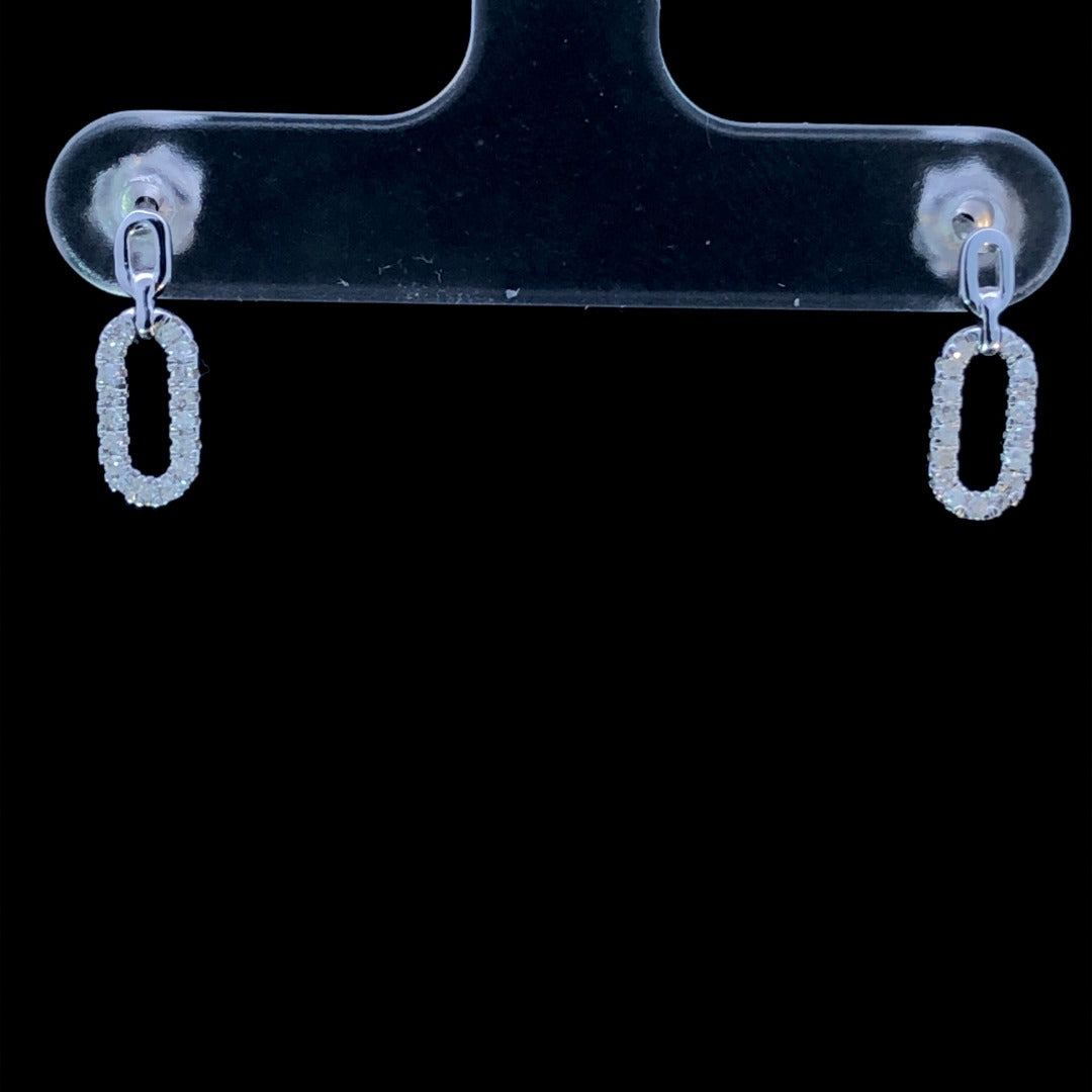 Make a statement with these dazzling diamond link earrings. Crafted in 14kt white gold, these chic dangles feature .10ctw of shimmering round diamonds, giving your look a touch of sparkle. Embrace effortless elegance and timeless style with these beautiful earrings!