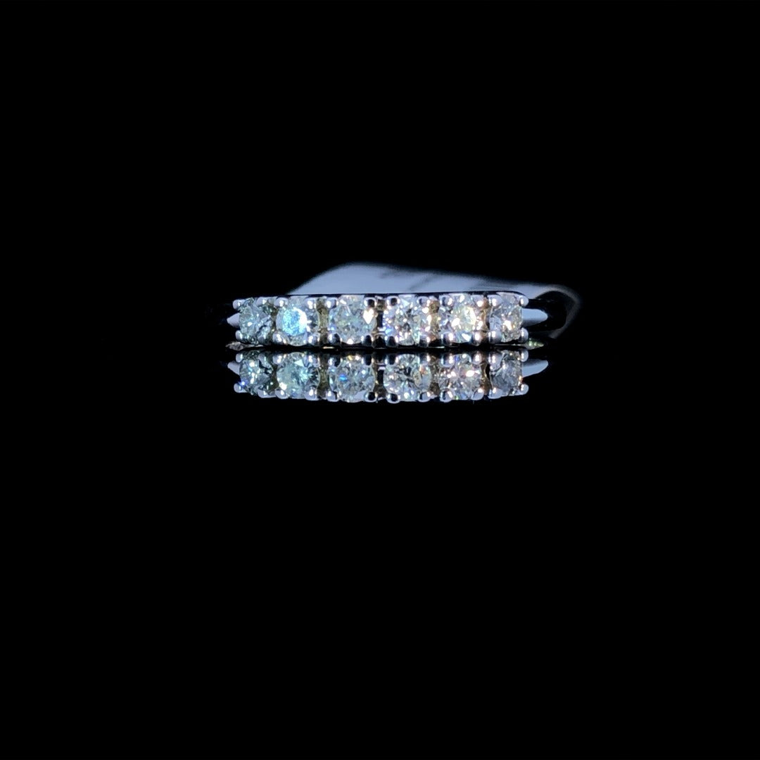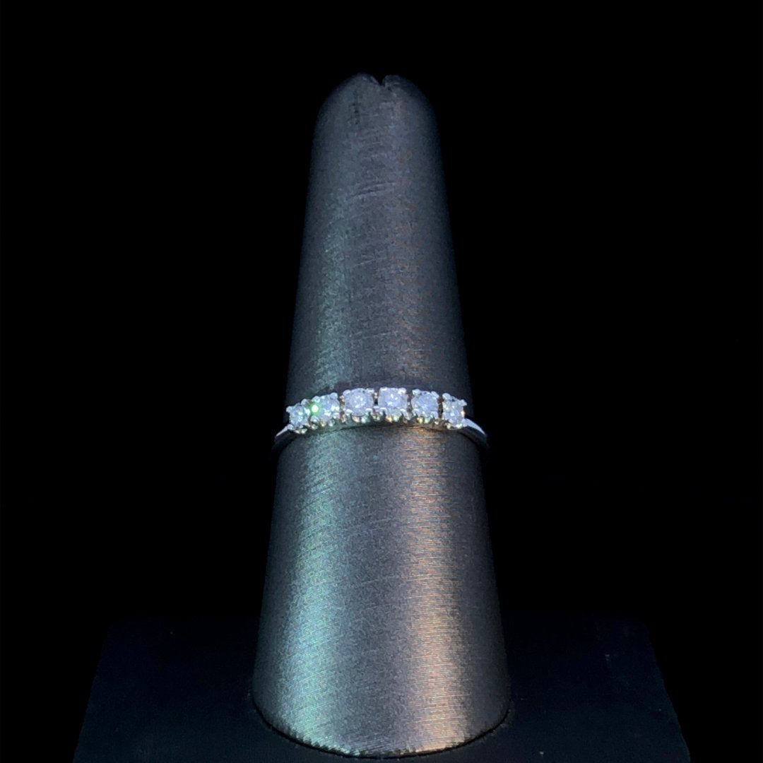 Experience the timeless elegance of this classic diamond band. Crafted with elegance from 10kt white gold, it's adorned with .37ctw of shimmering round diamonds for a brilliant and luxurious look. Perfect for any occasion or collection. This ring is a size 8.25. If that size is not a perfect fit, first time sizing is free at the time of purchase. Additional sizing fees may apply.