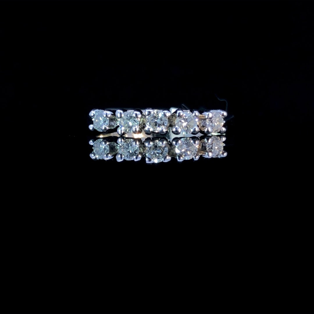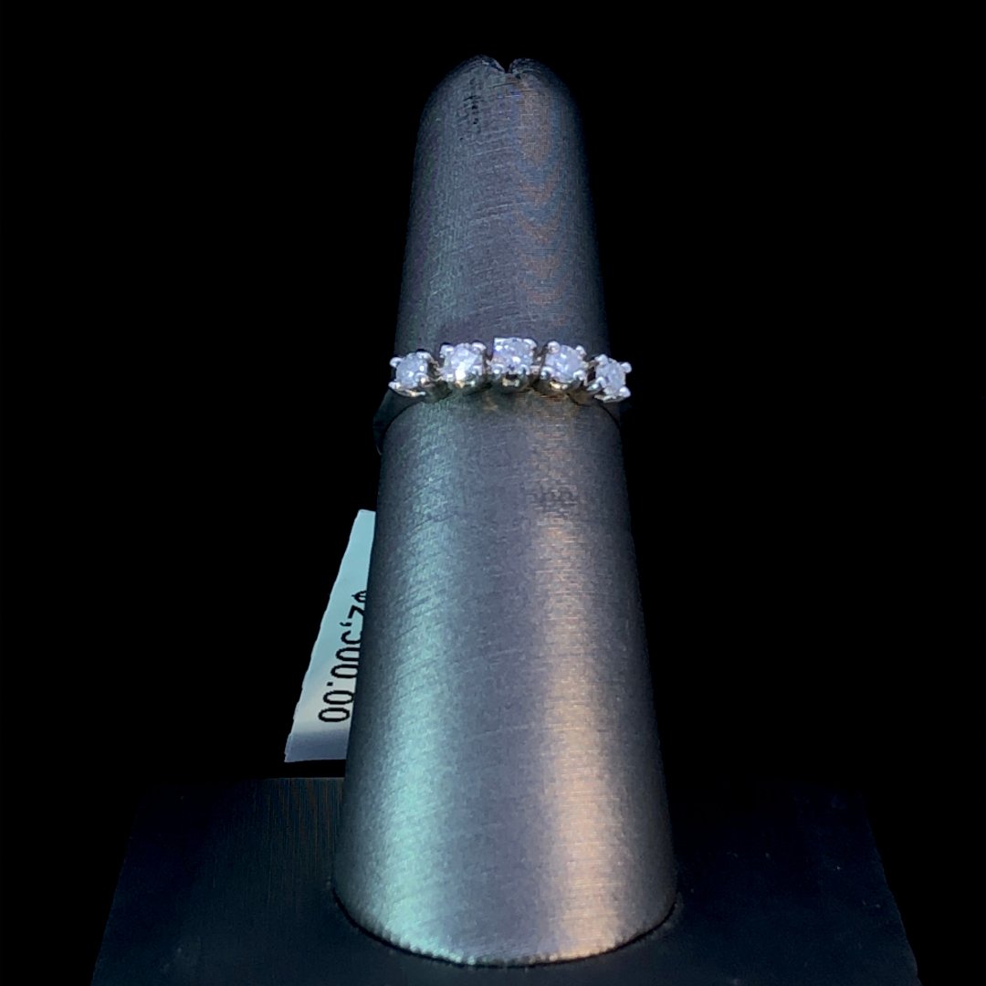 Elevate your style with this classic diamond band. Crafted with 14kt white gold, the .31ctw of round diamonds add a timelessly elegant sparkle to your look. Wear it day or night for a timelessly classic look that will never go out of style. This ring is a size 6.5. If that size is not a perfect fit, first time sizing is free at the time of purchase. Additional sizing fees may apply.